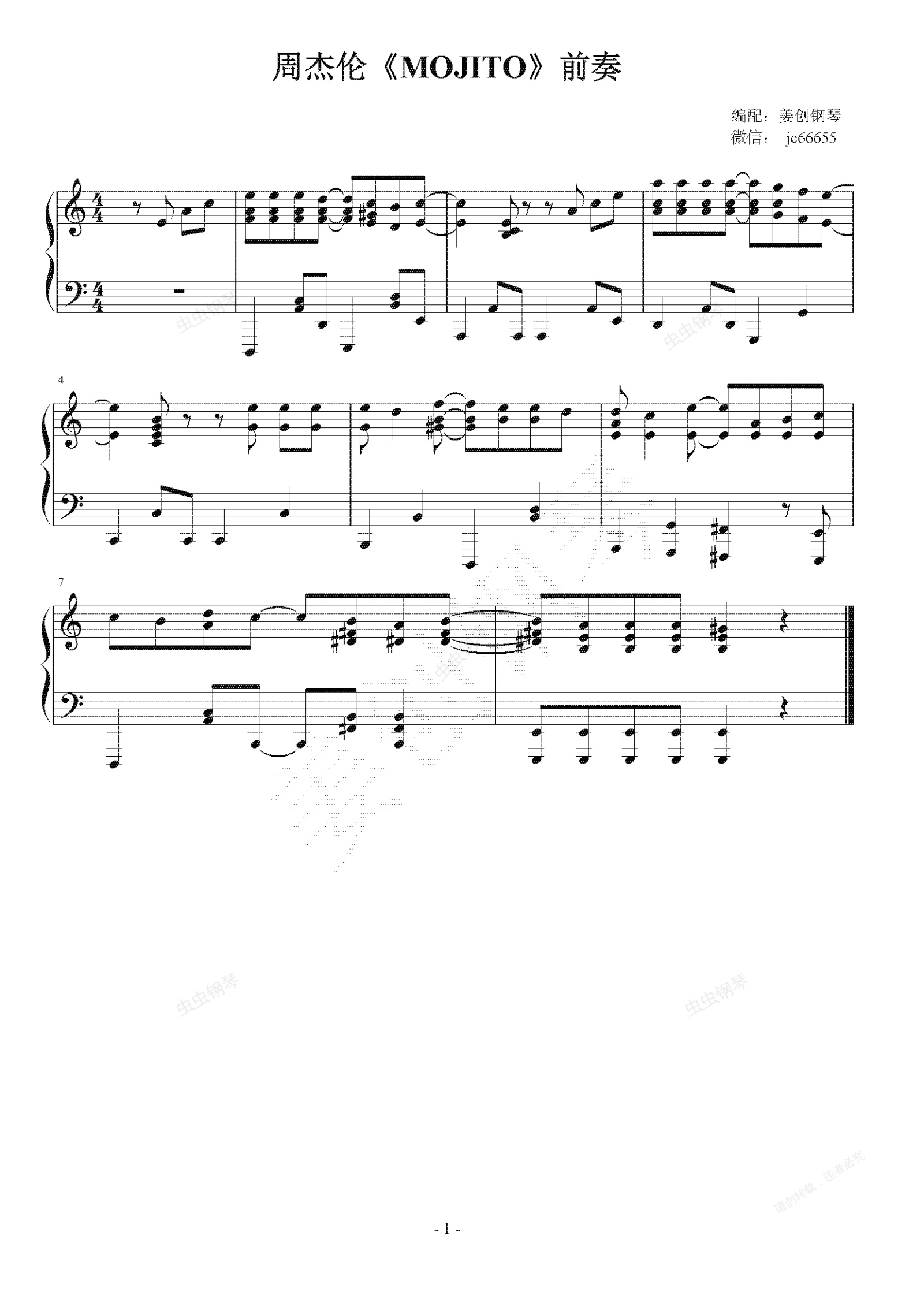 钢琴谱:周杰伦新歌《MOJITO》前奏 完美演奏版