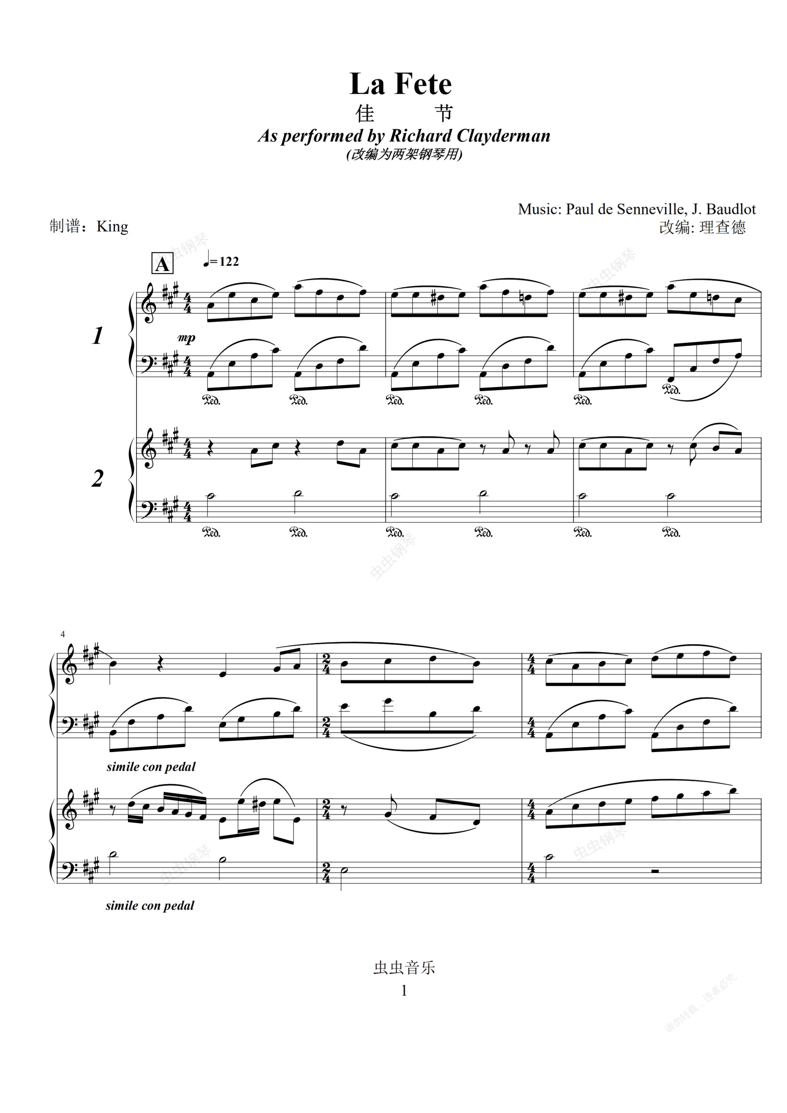 钢琴谱:钢琴四手联弹 佳节 完美版 附音频