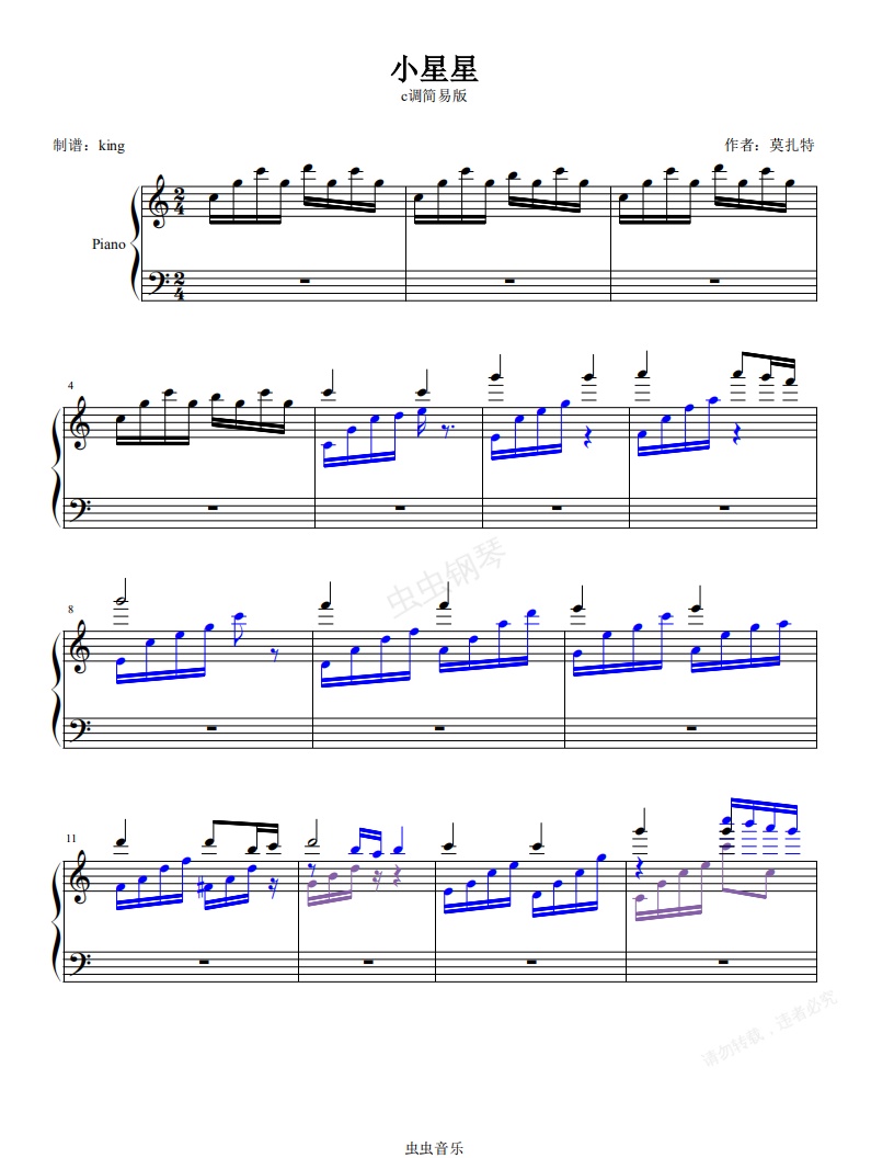 钢琴谱:小星星 完美c调 改良版 容易上手
