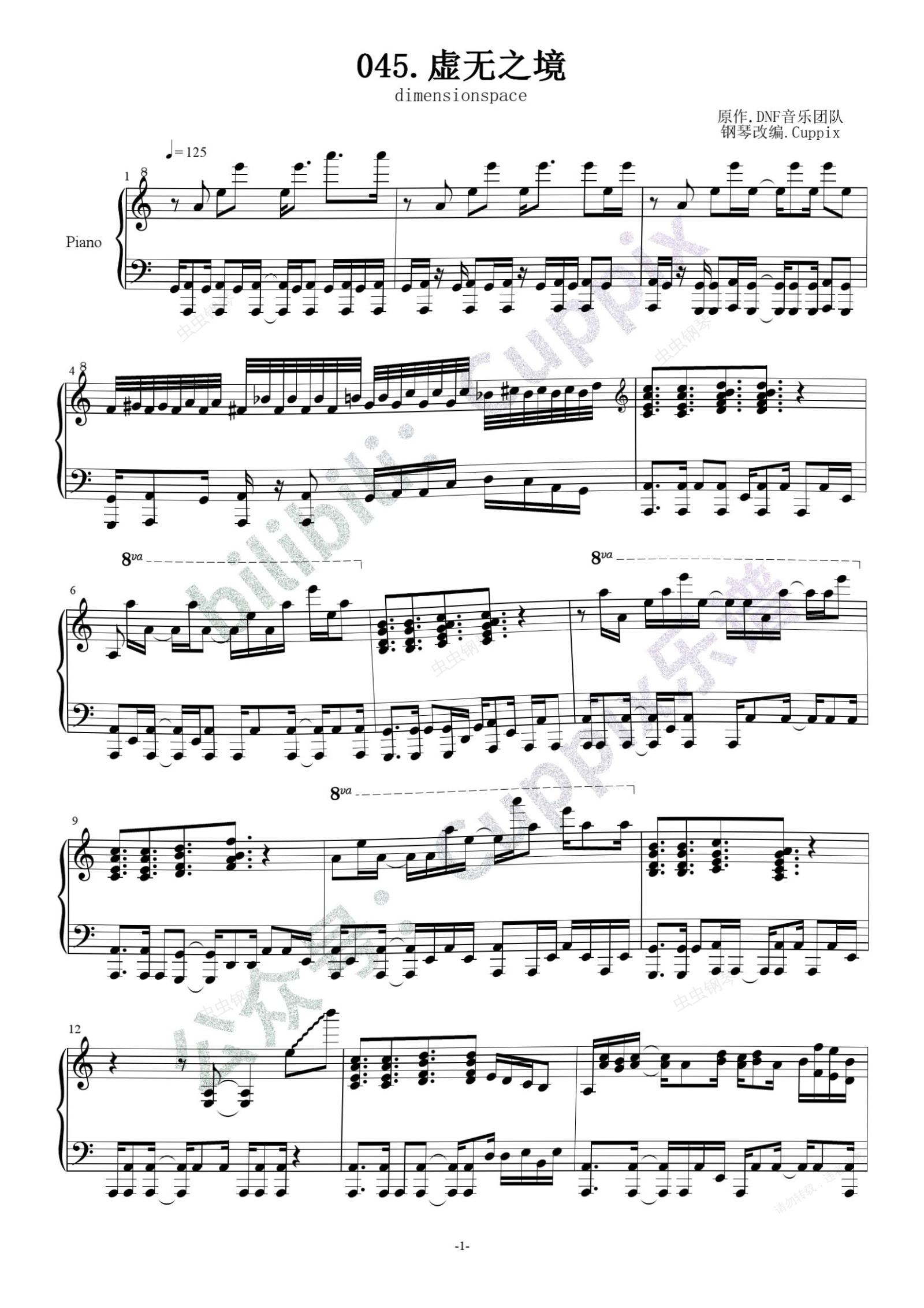 钢琴谱:DNF - 虚无之境 dimensionspace(高度还原)