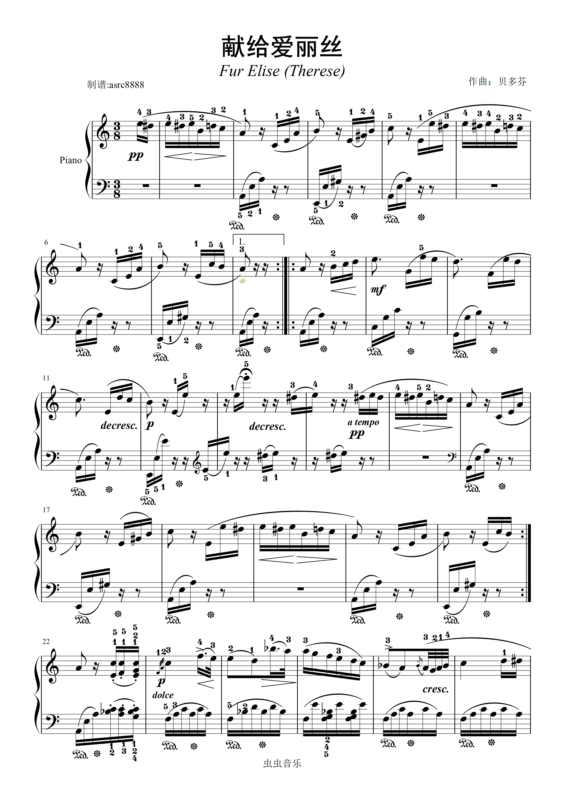 钢琴谱:献给爱丽丝