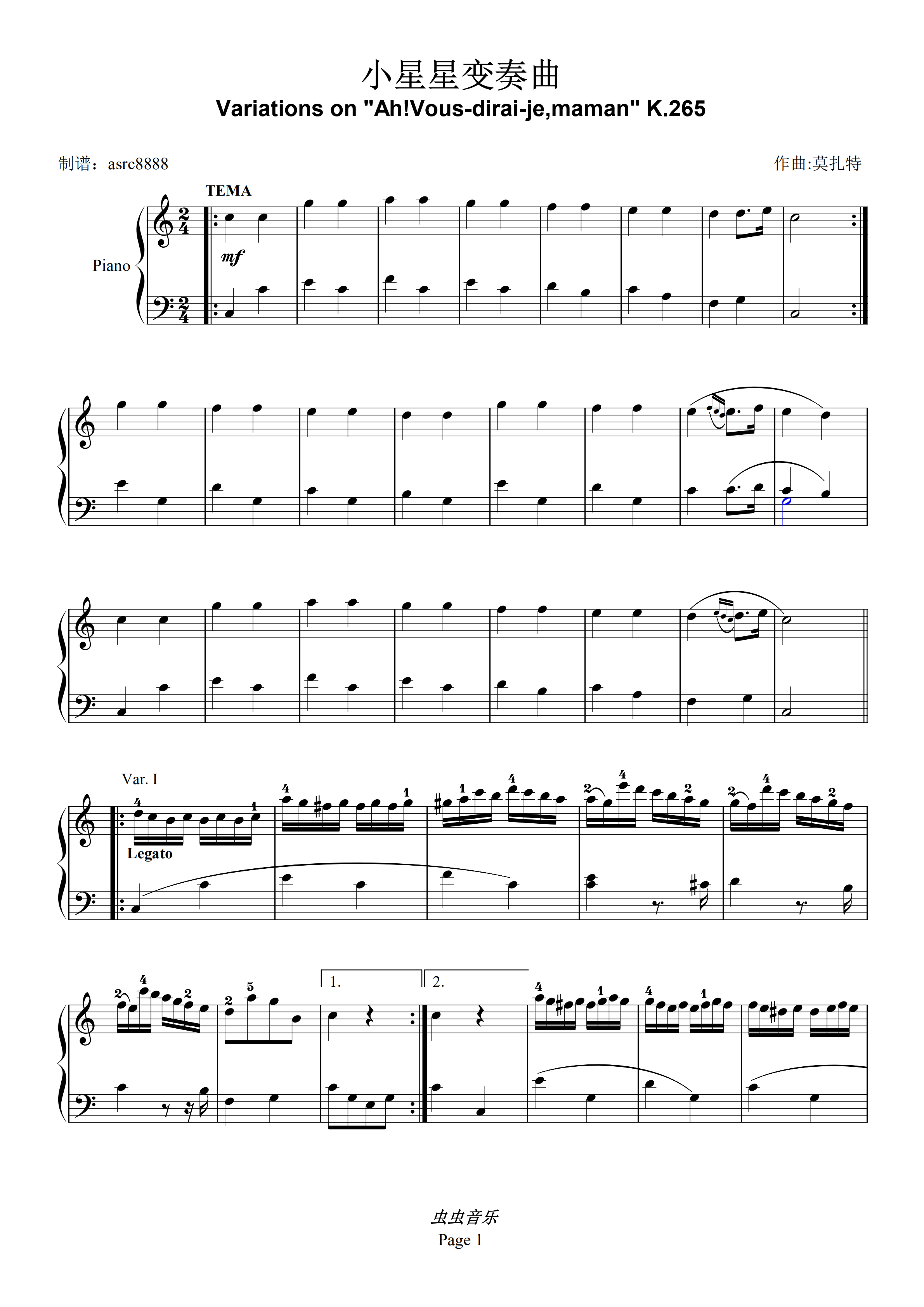 钢琴谱:小星星伴奏曲