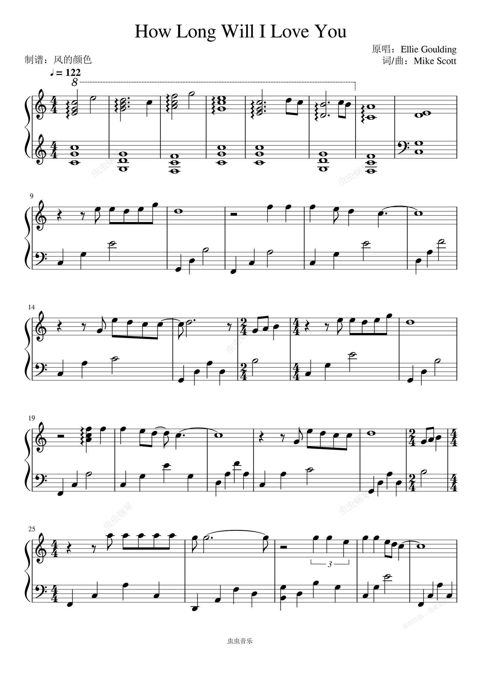 钢琴谱:How Long Will I Love You(电影《时空恋旅人》OST)