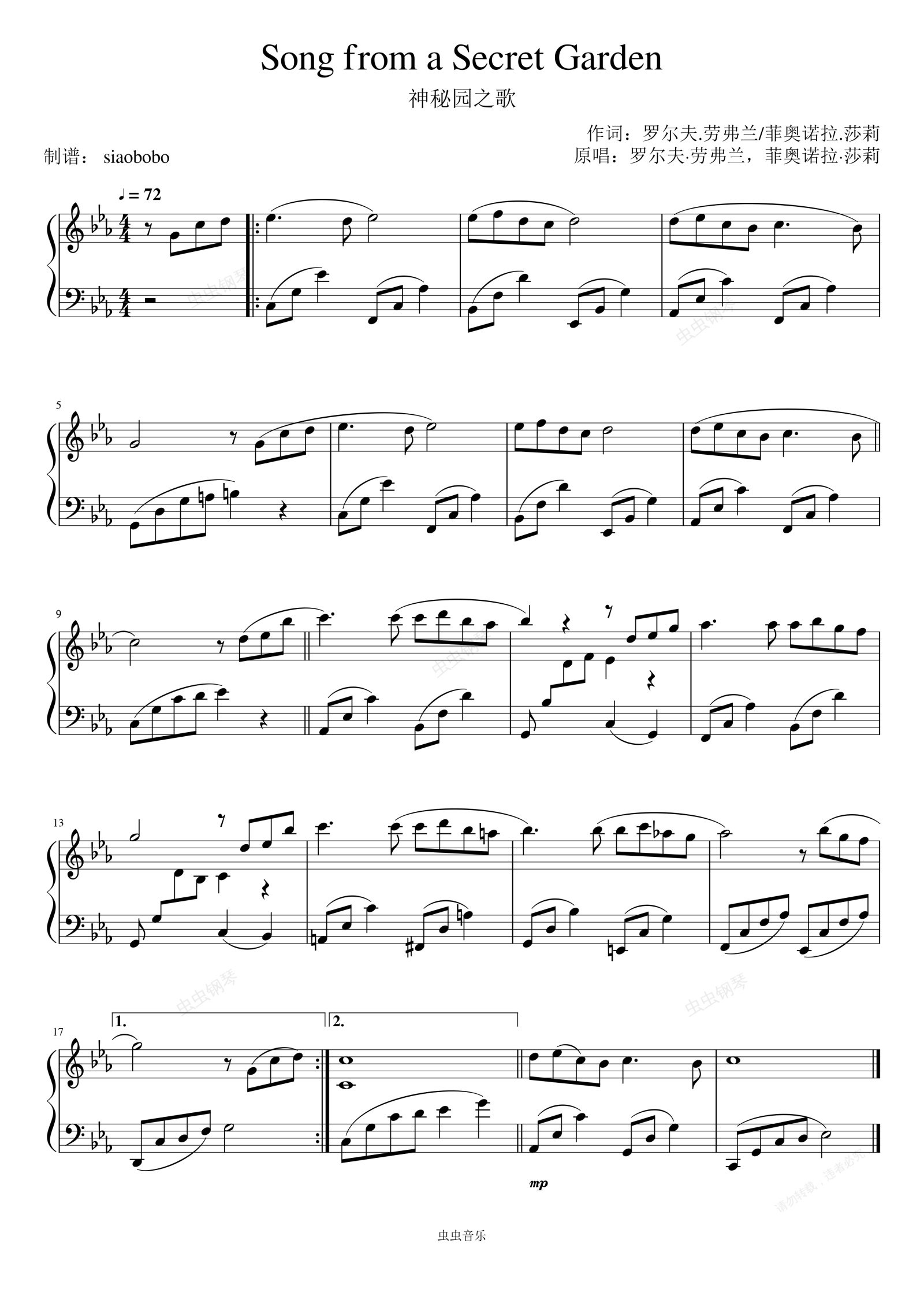 钢琴谱:神秘园之歌——Song from a Secret Garden