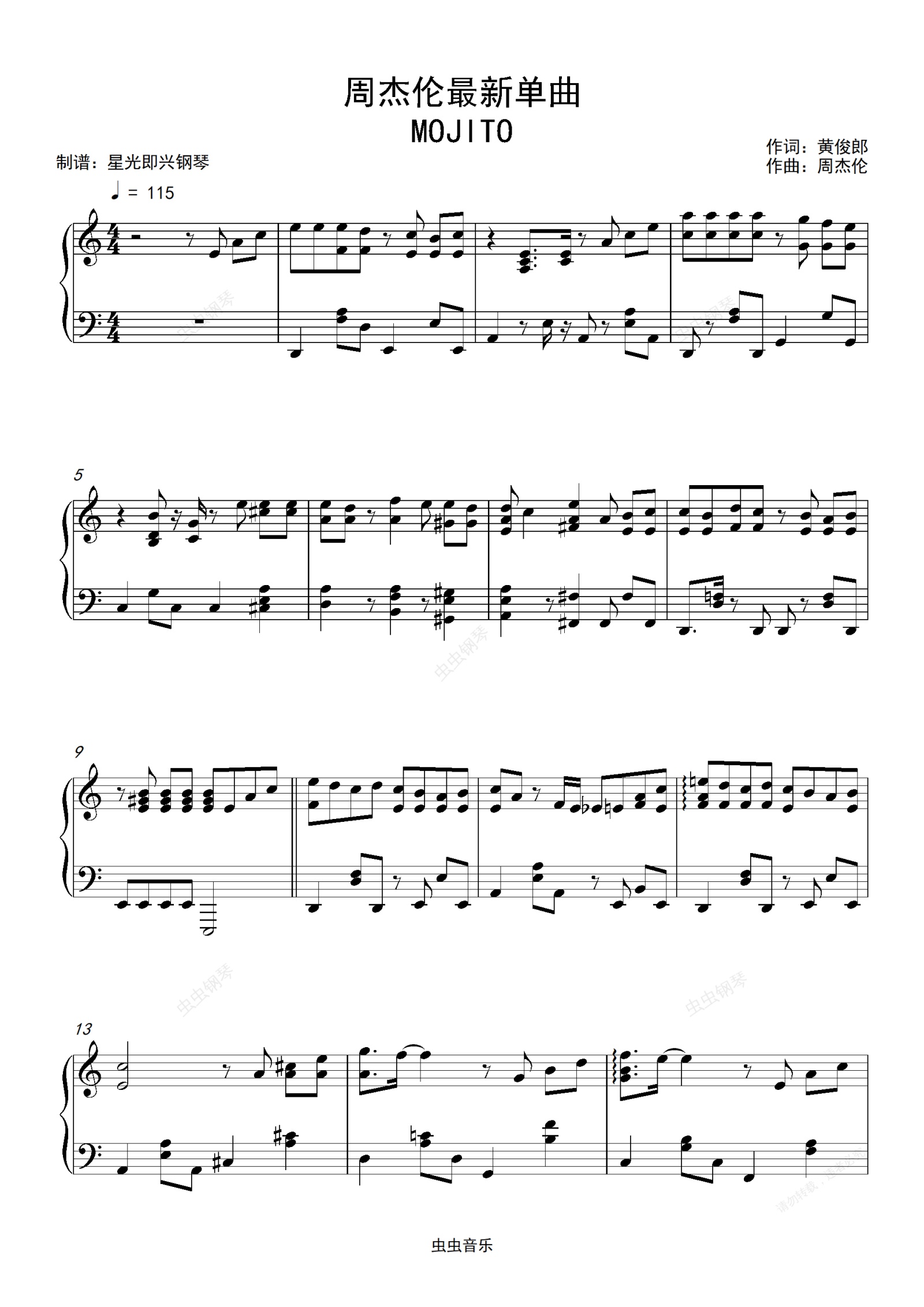 钢琴谱:MOJITO-周杰伦(完美演奏版)