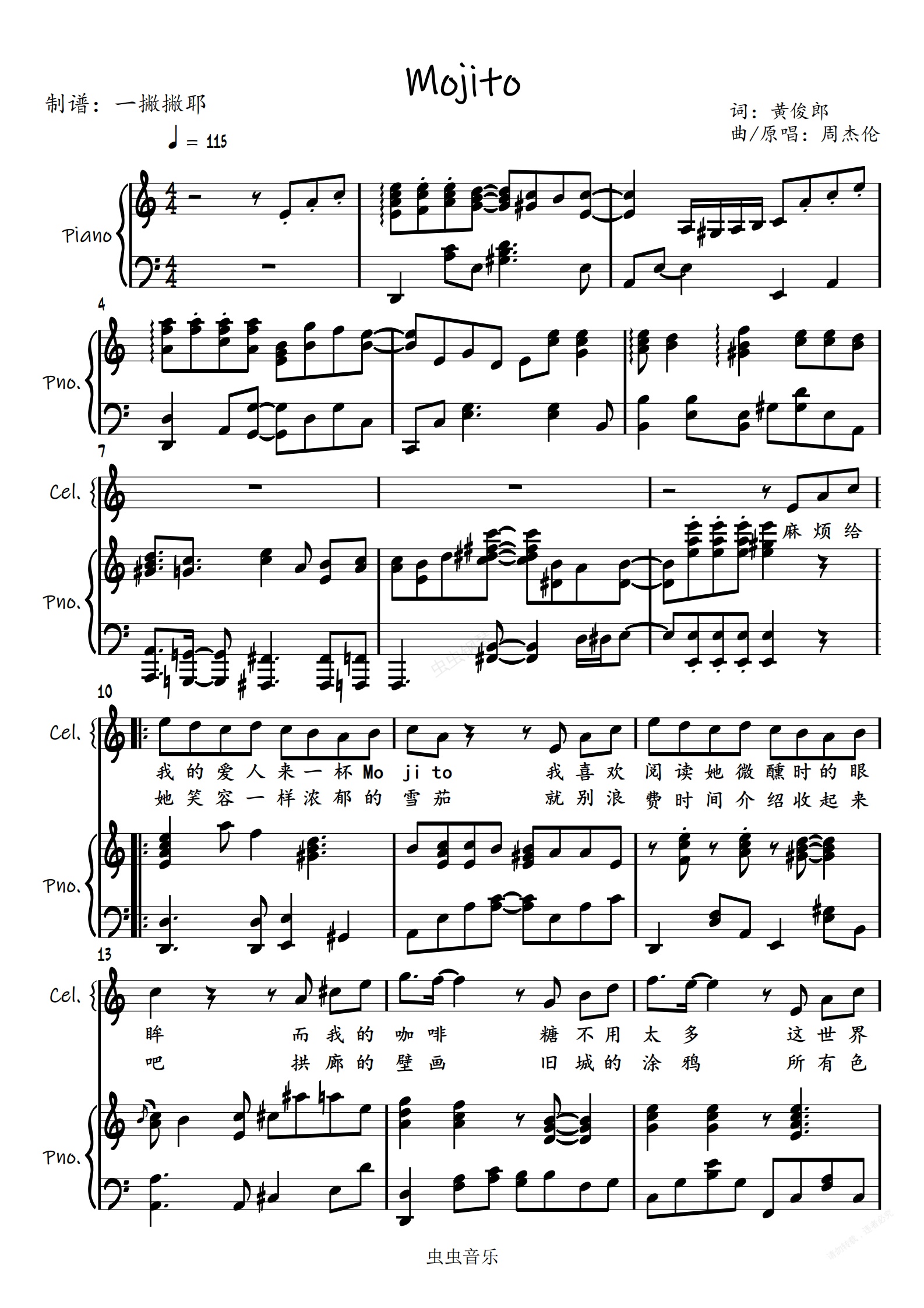钢琴谱:Mojito【弹唱谱】周杰伦「一撇撇耶」