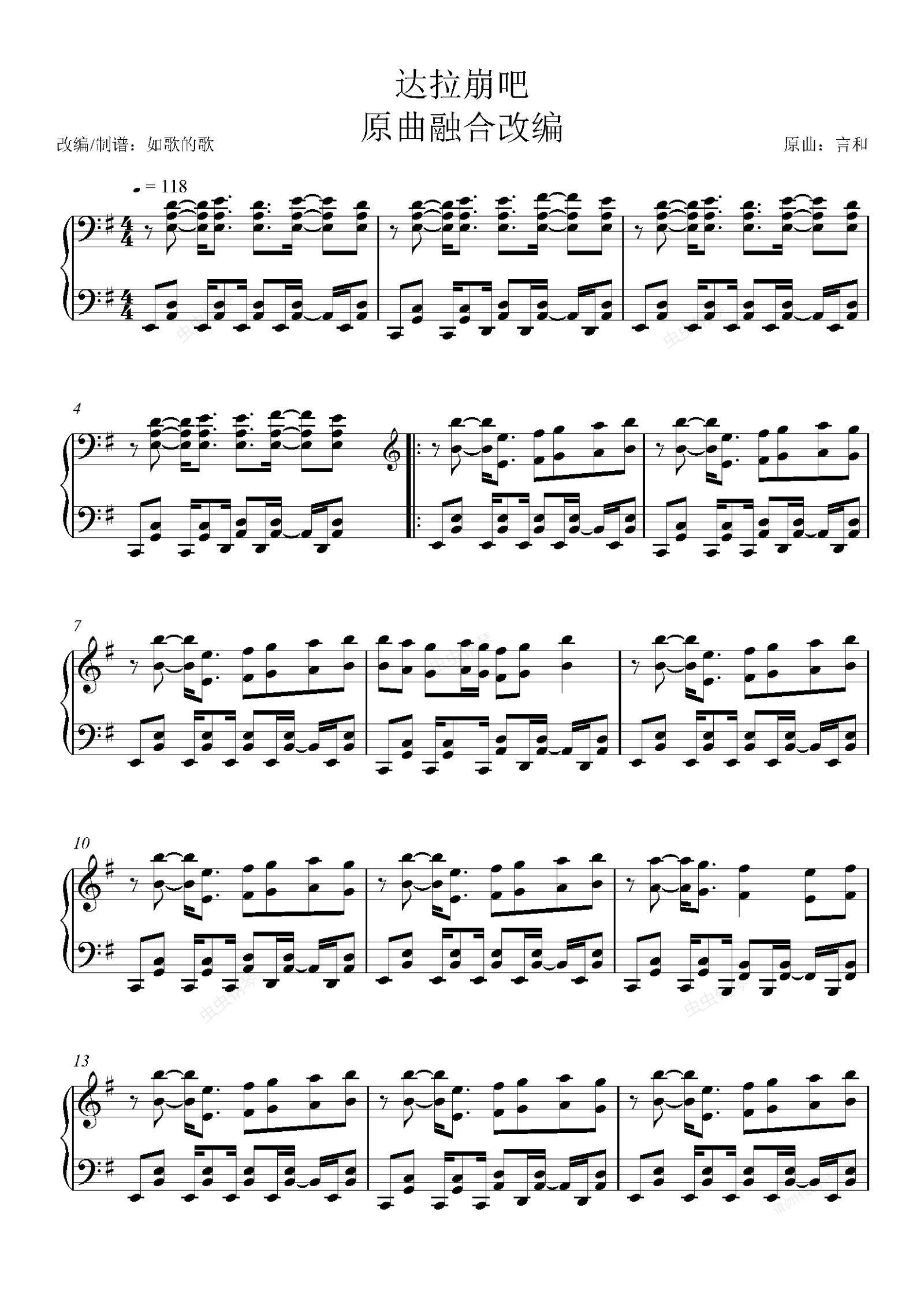 钢琴谱:《达拉崩吧》融合言和原作和周深翻唱(含solo部分)