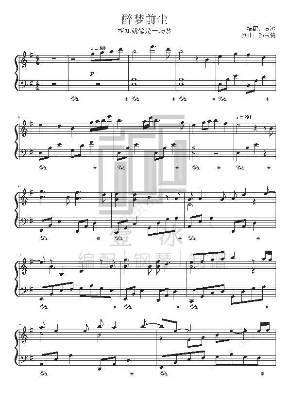 钢琴谱:醉梦前尘//《魔道祖师》主题曲G调钢琴版-壹冰