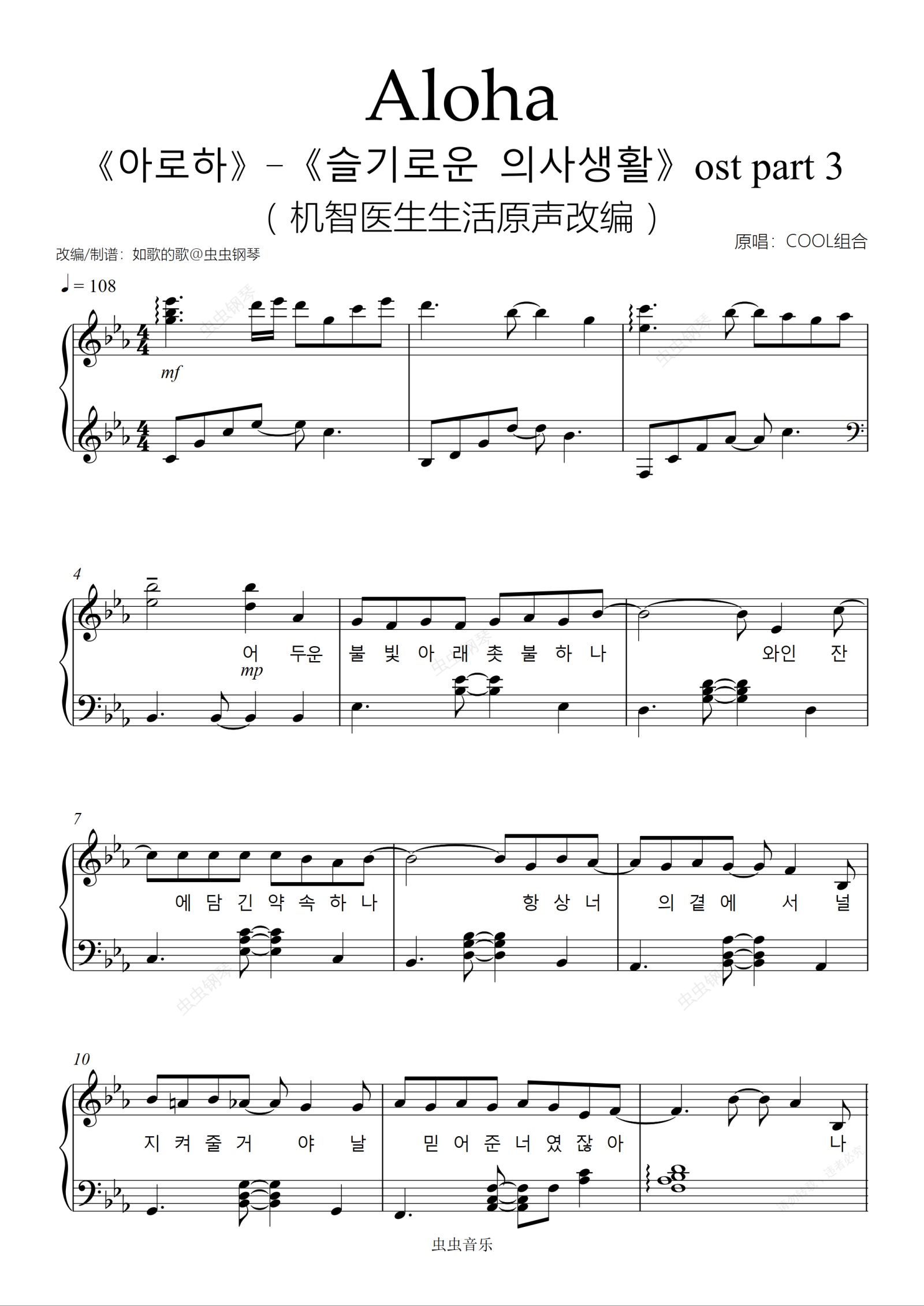 钢琴谱:《Aloha》韩剧机智医生生活ost by曹政奭