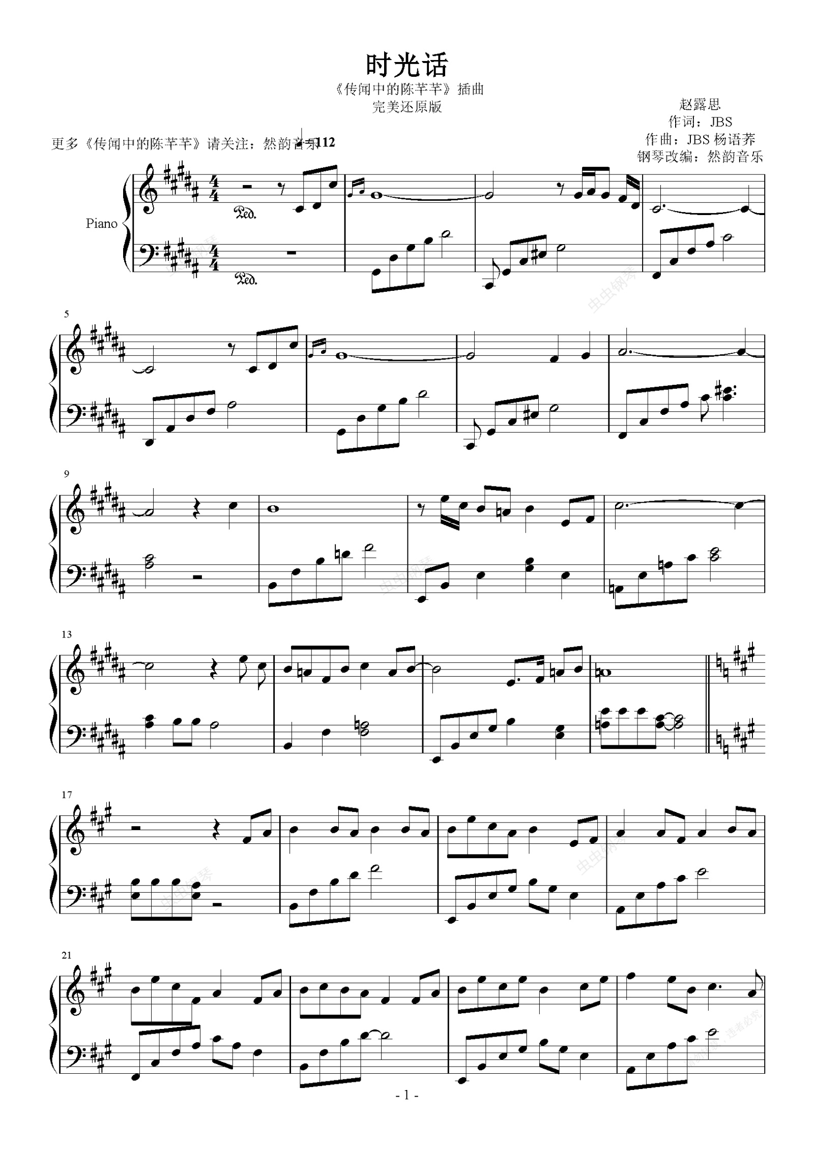 钢琴谱:【然韵音乐】时光话 赵露思 传闻中的陈芊芊插曲