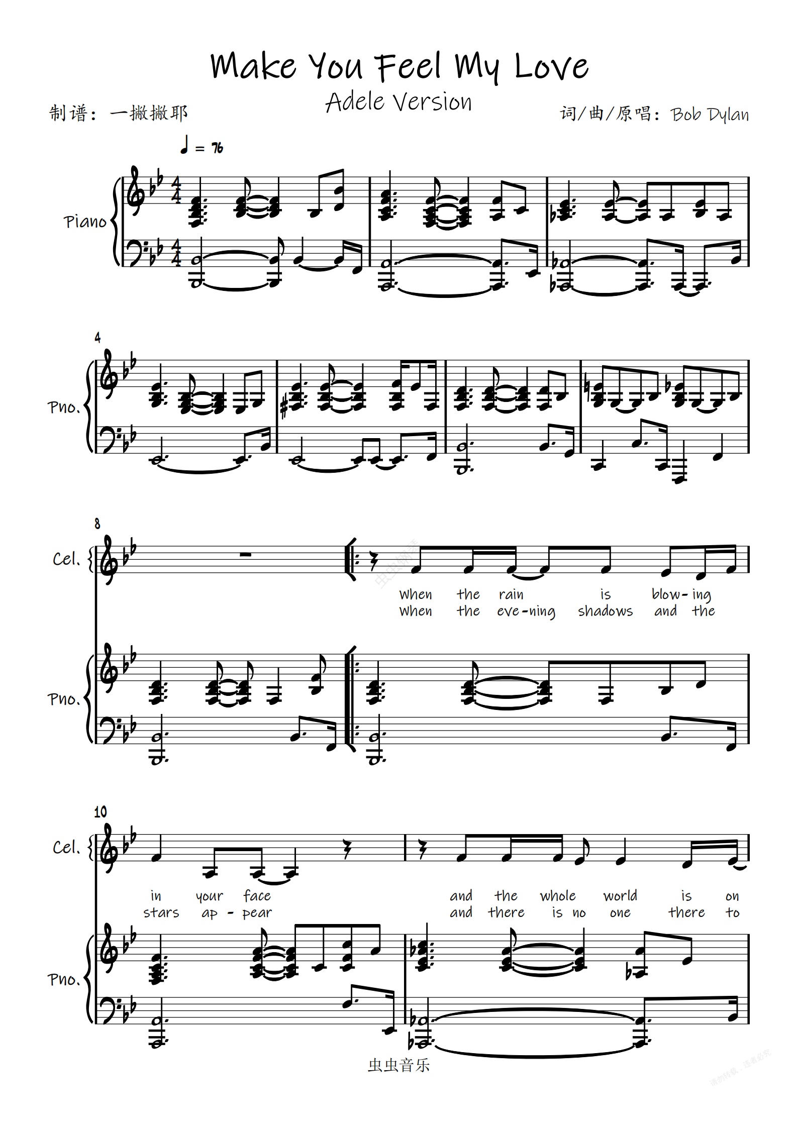 钢琴谱:Make You Feel My Love【弹唱谱】Adele阿黛尔∣Bob Dylan「一撇撇耶」