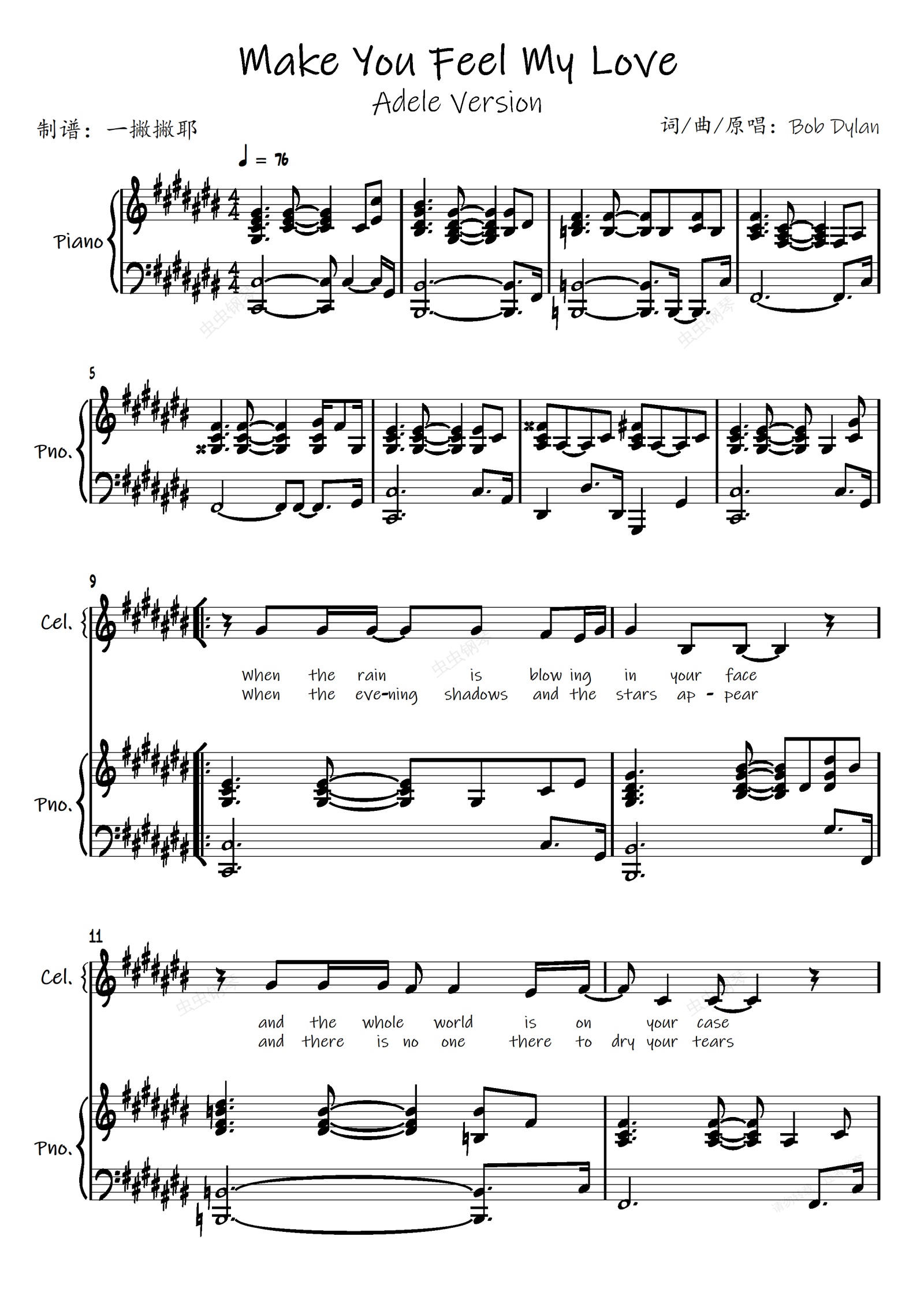 钢琴谱:Make You Feel My Love【降调版弹唱谱】Adele阿黛尔∣Bob Dylan「一撇撇耶」