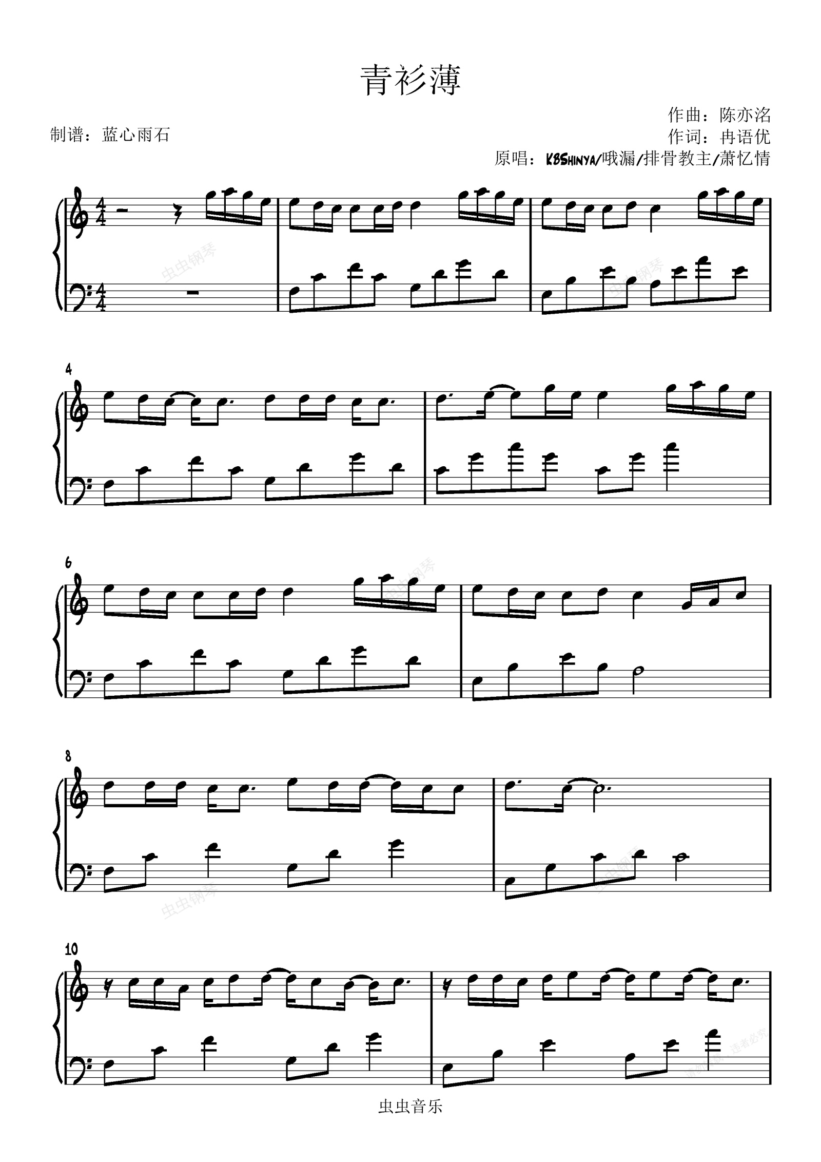 钢琴谱:青衫薄