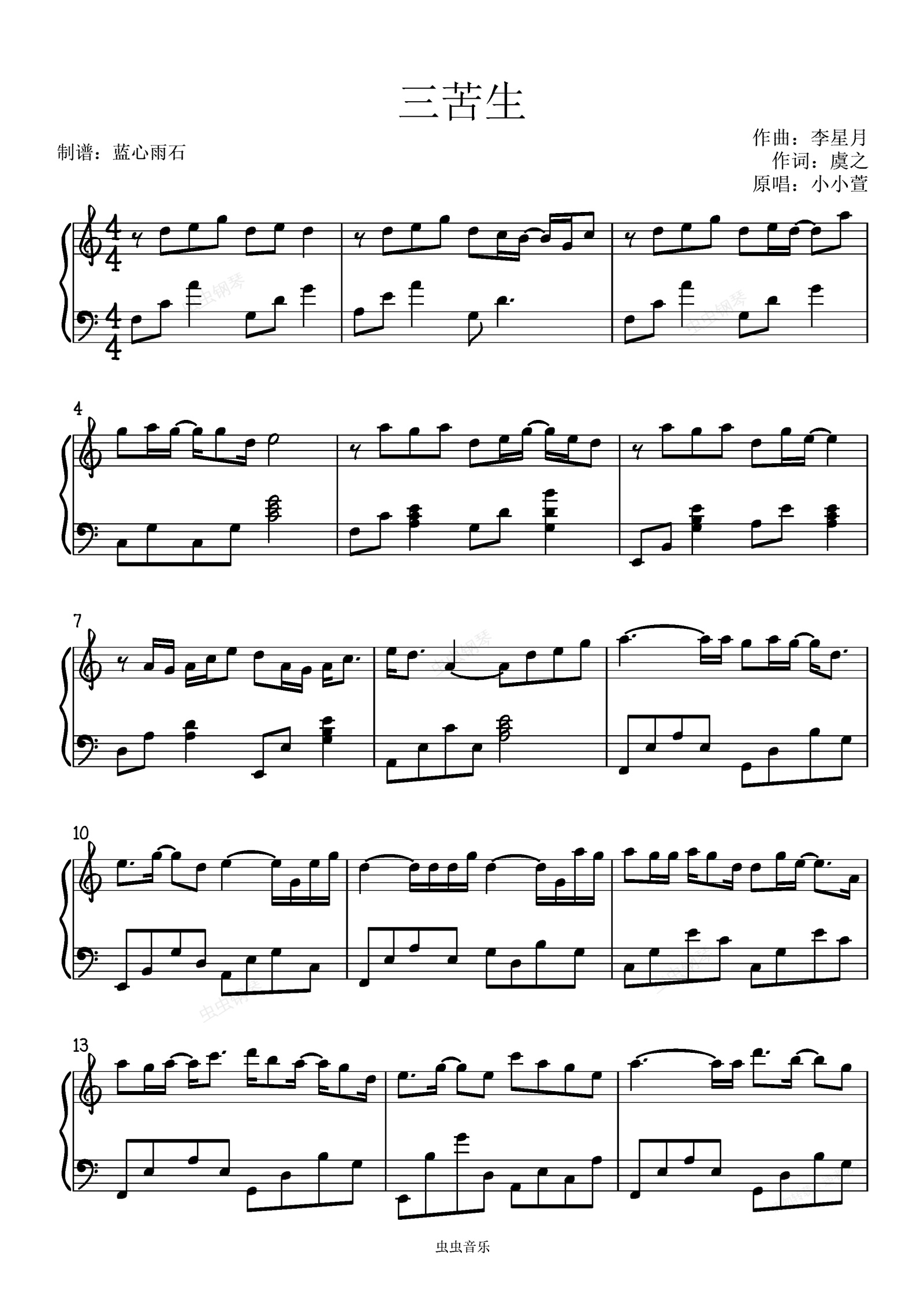 您的位置: 首页 > 钢琴谱库 > 三苦生