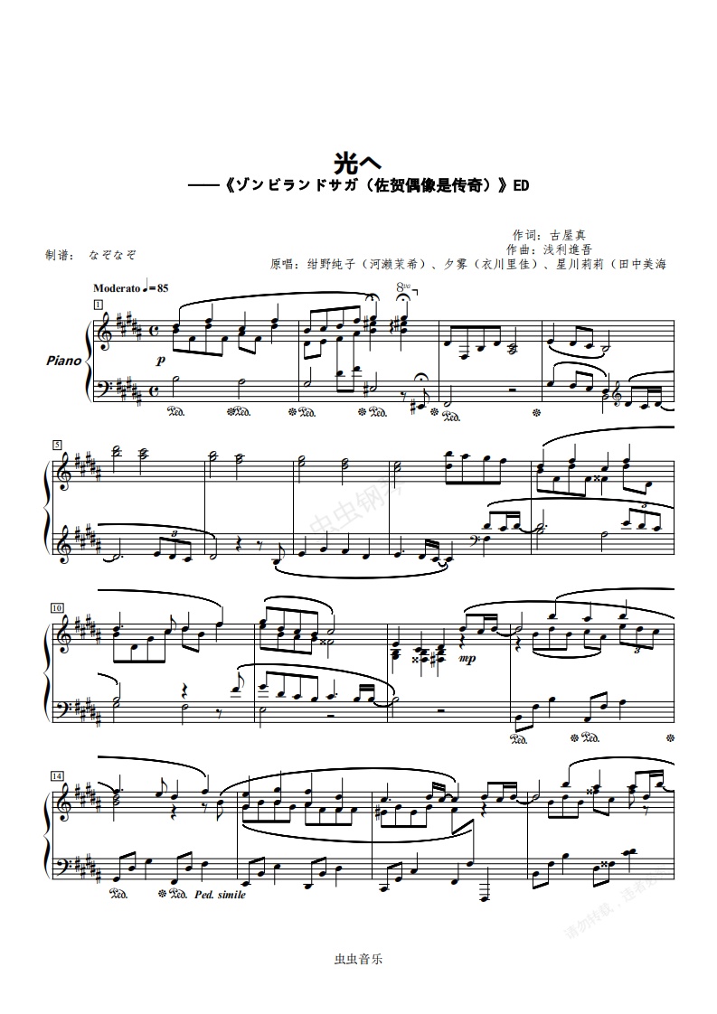 钢琴谱:【佐贺偶像是传奇】ED 光へ