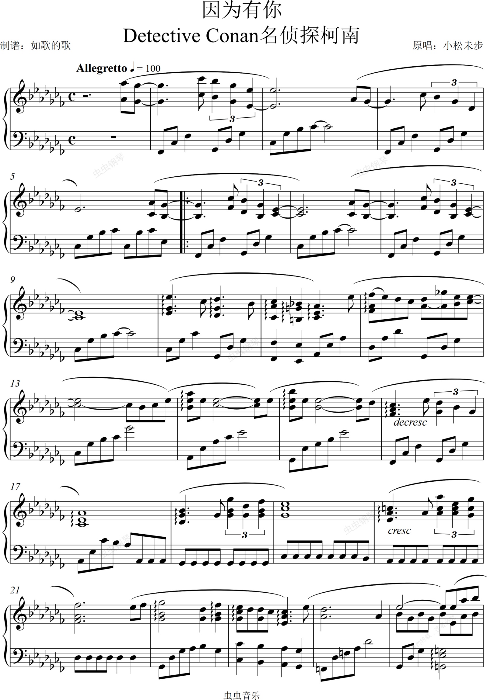 钢琴谱:《因为有你》名侦探柯南-瞳孔中的暗杀者主题曲by小松未步