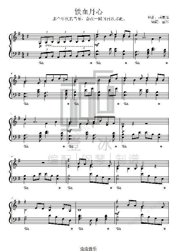 钢琴谱:铁血丹心//《射雕英雄传》主题曲-钢琴G调