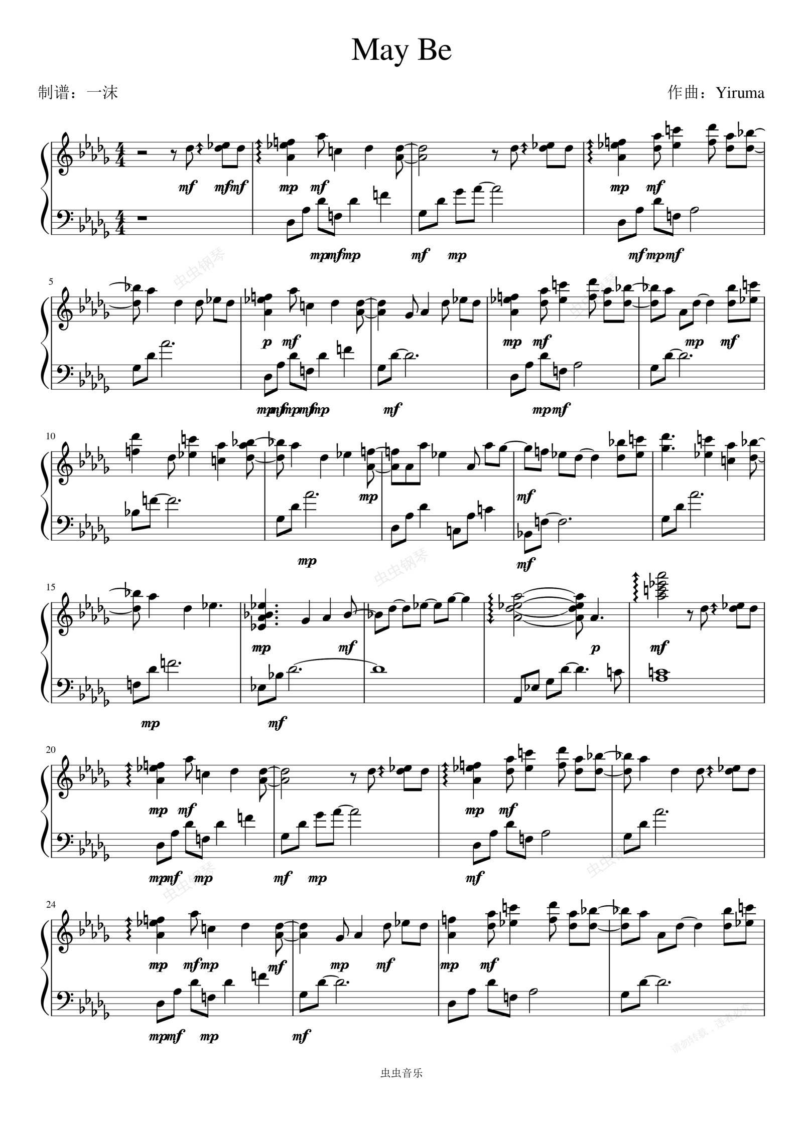 钢琴谱:Yiruma(李闰岷)——May Be 简单版 钢琴独奏