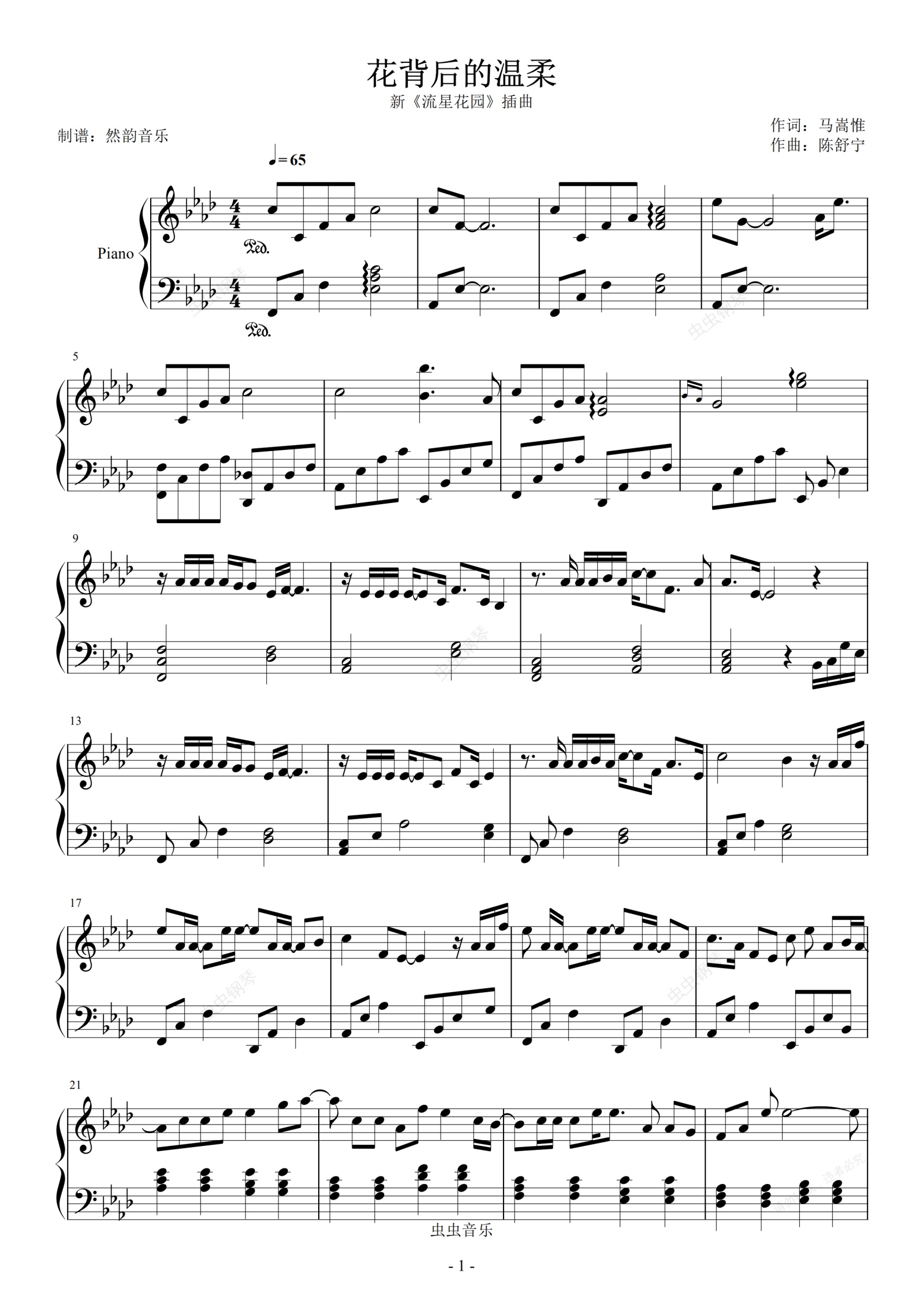 钢琴谱:【然韵音乐】花背后的温柔 官鸿 新《流星花园》插曲 完美还原