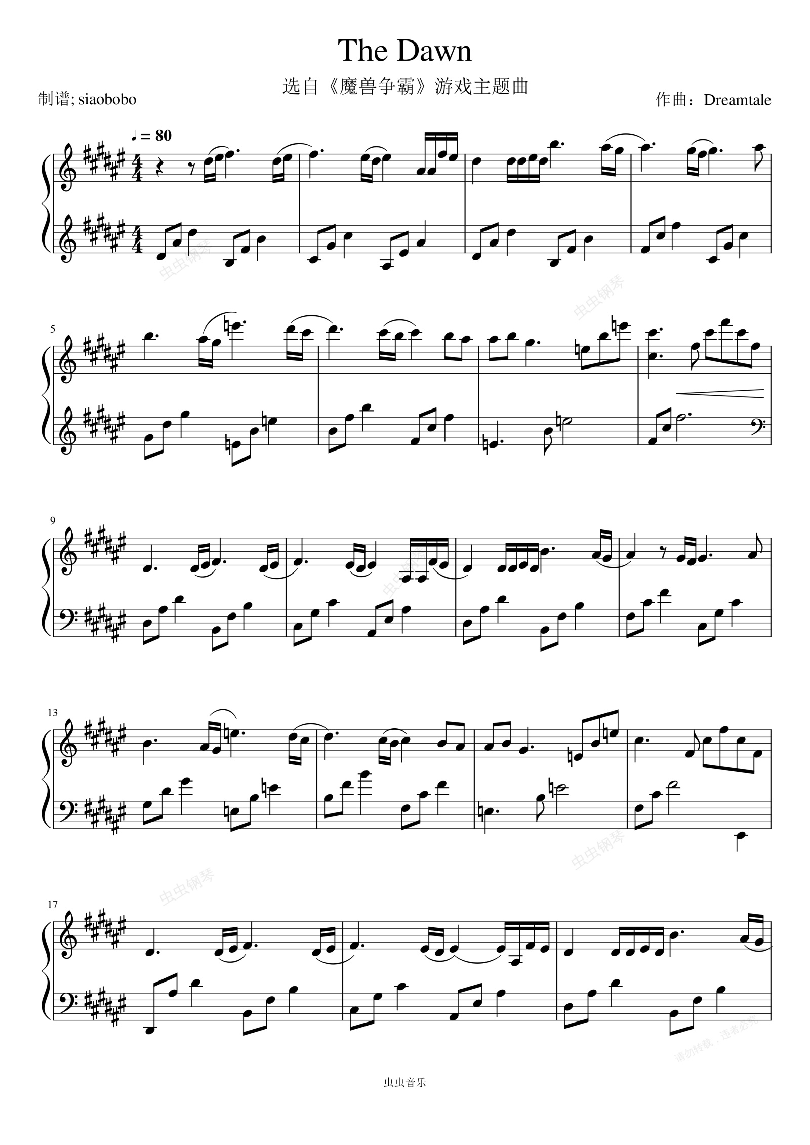 钢琴谱:The Dawn(亡灵序曲)——选自《魔兽争霸》游戏主题曲