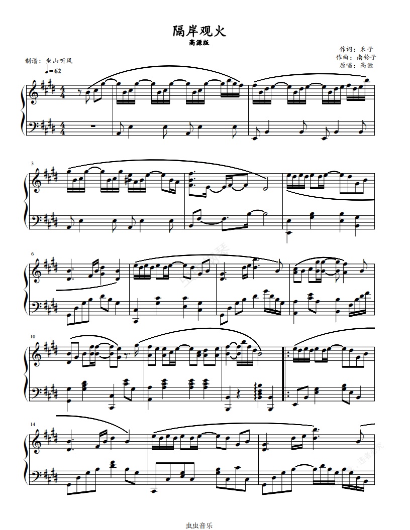 钢琴谱:隔岸观火——一高源版