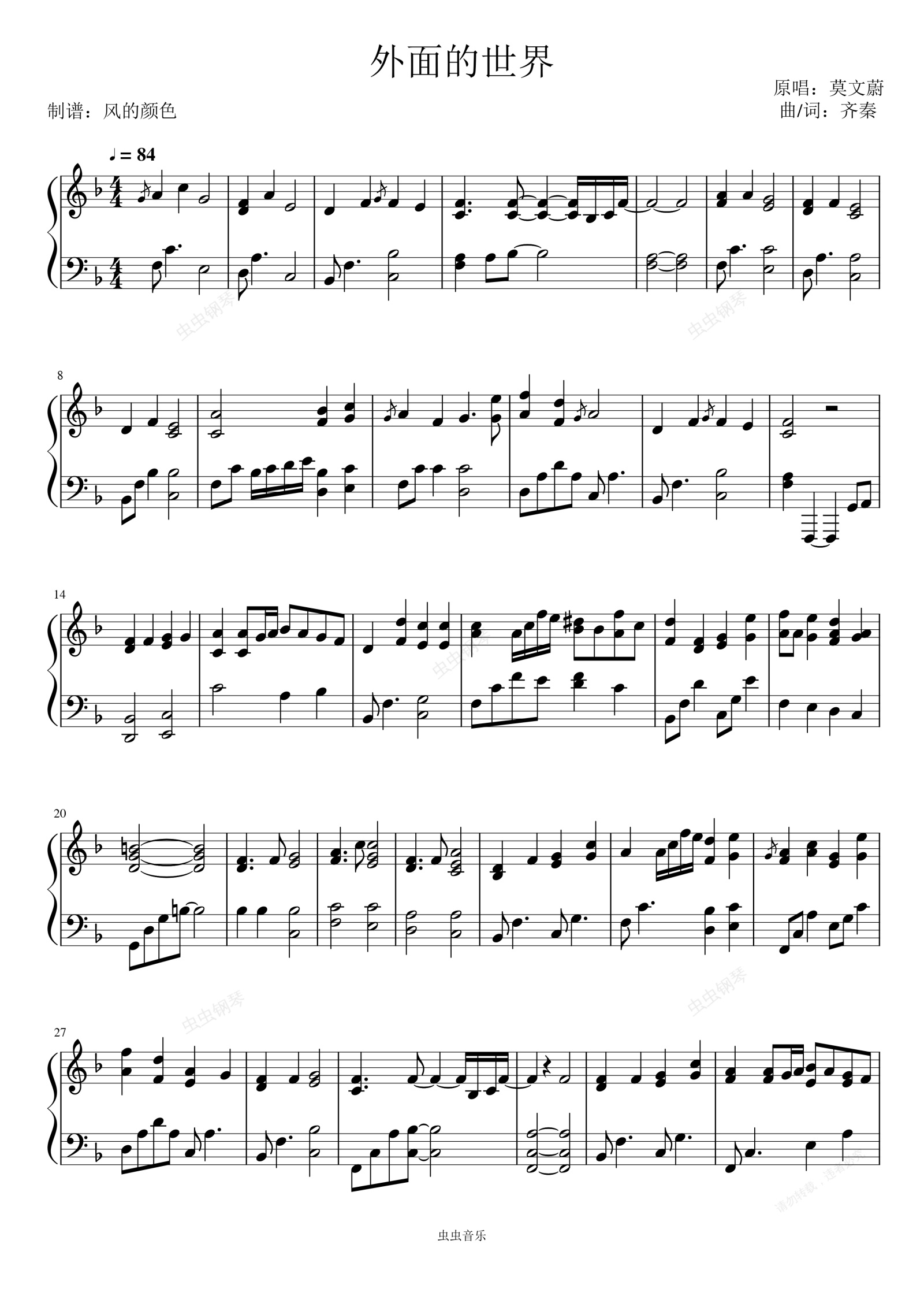 钢琴谱:外面的世界--华语经典单曲