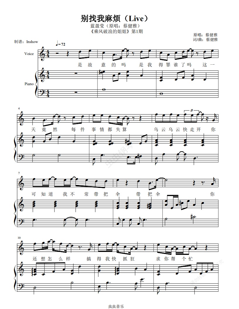 钢琴谱:别找我麻烦 (《乘风破浪的姐姐》第1期)