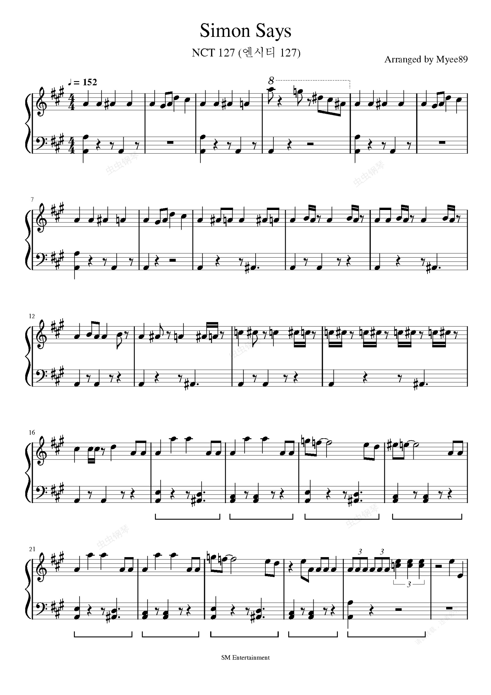 钢琴谱:NCT 127 - Simon Says 钢琴谱
