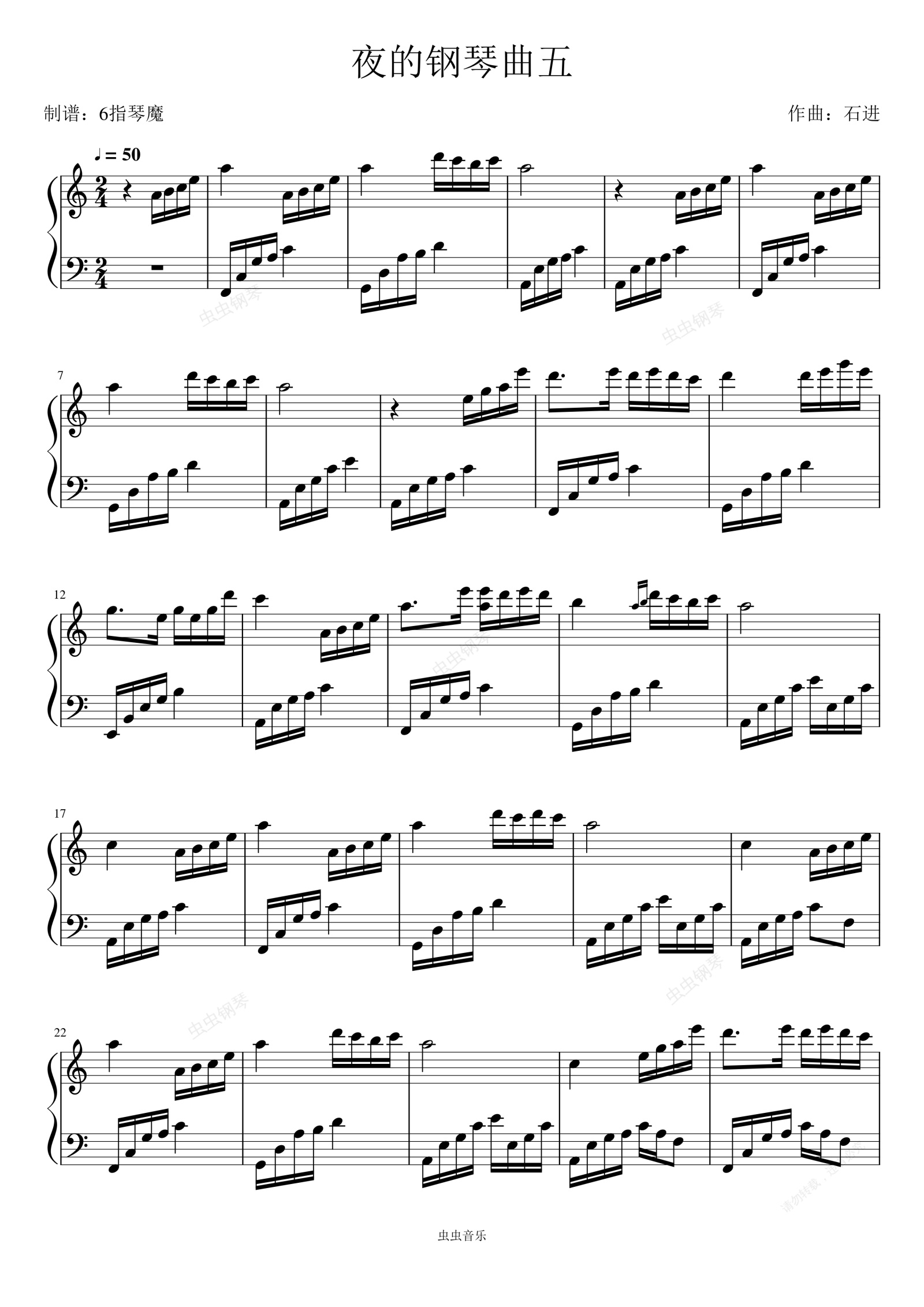 钢琴谱:夜的钢琴曲五(全网唯一版本——原版再现-C调)