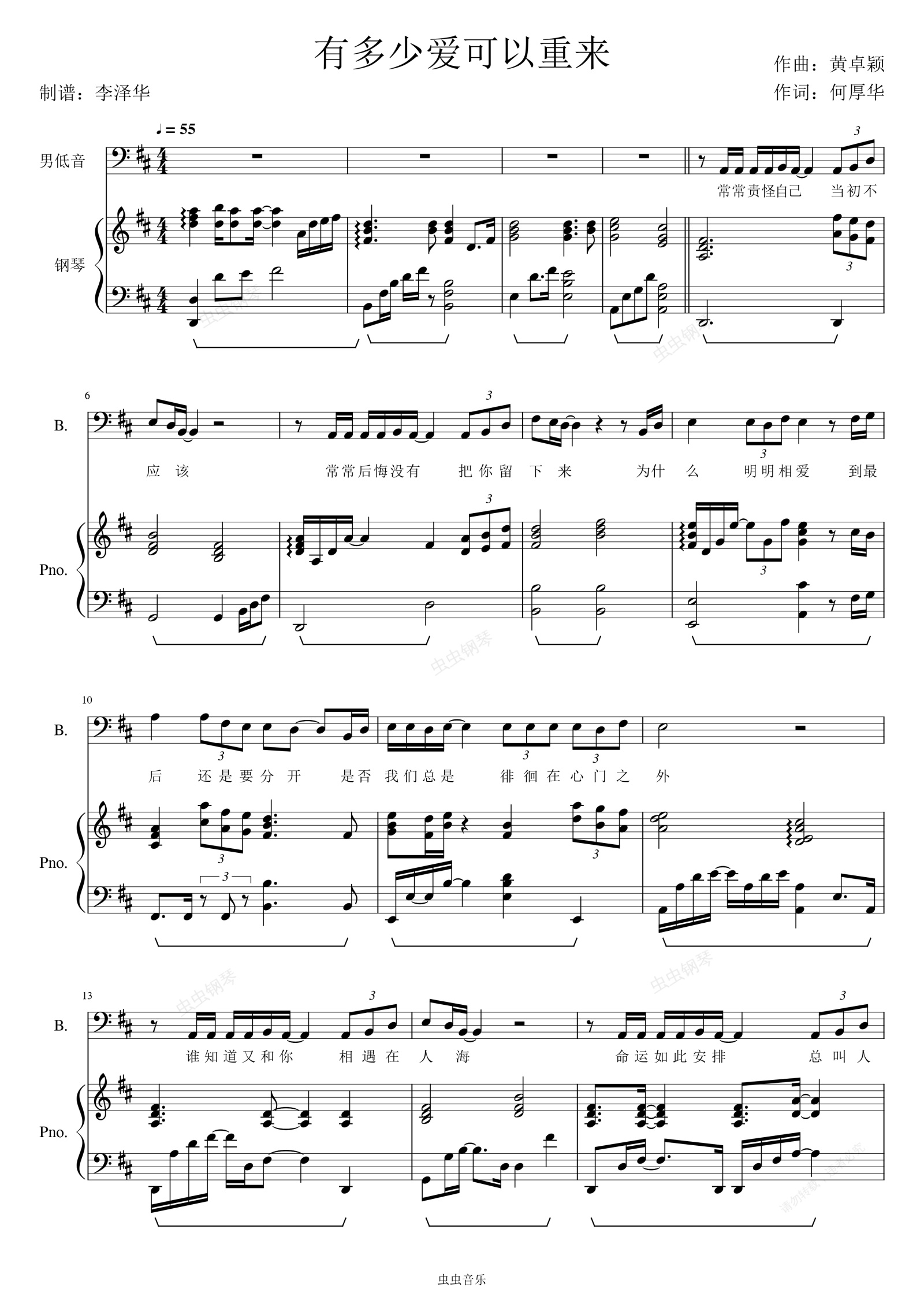 钢琴谱:有多少爱可以重来(钢琴伴奏原版)