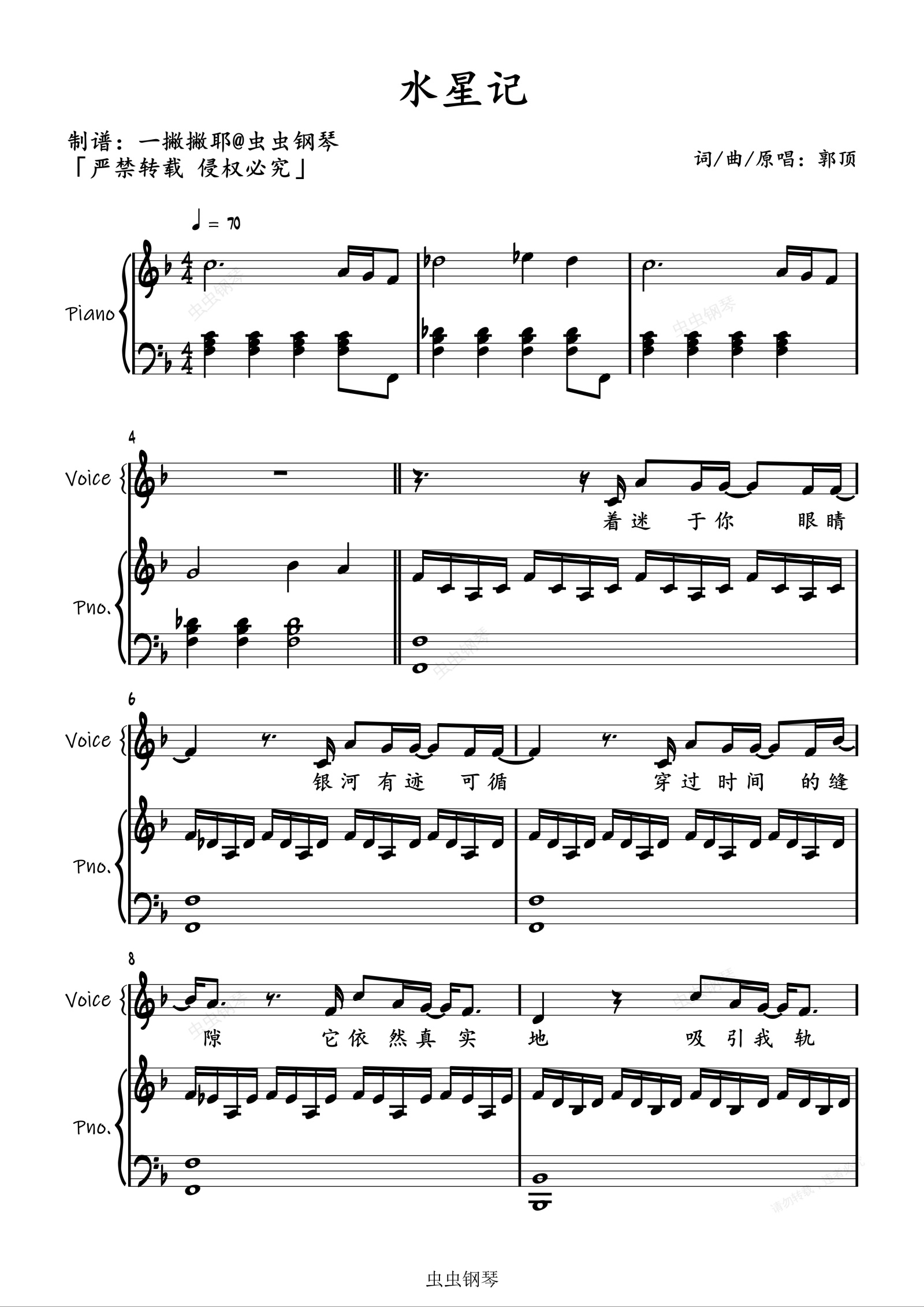钢琴谱:水星记【极限还原弹唱谱】郭顶「一撇撇耶」