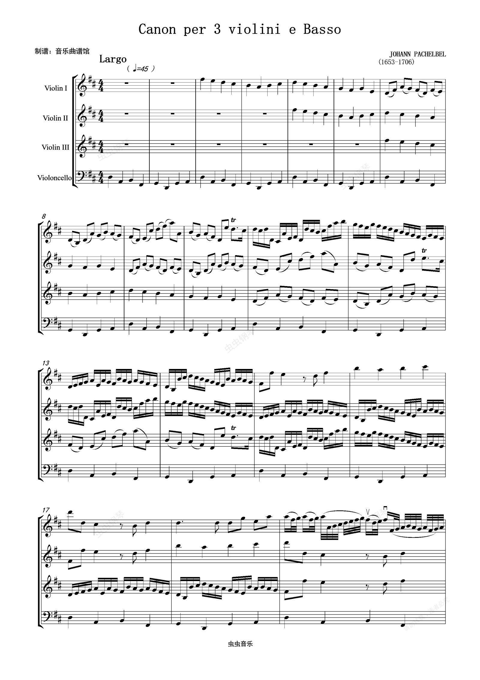 钢琴谱:《D大调卡农弦乐四重奏》-约翰·帕赫贝尔(Canon原版)