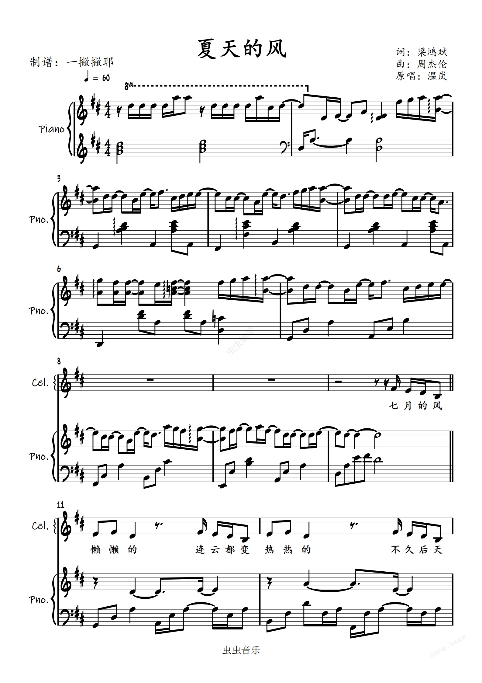 钢琴谱:夏天的风【弹唱谱】温岚「一撇撇耶」