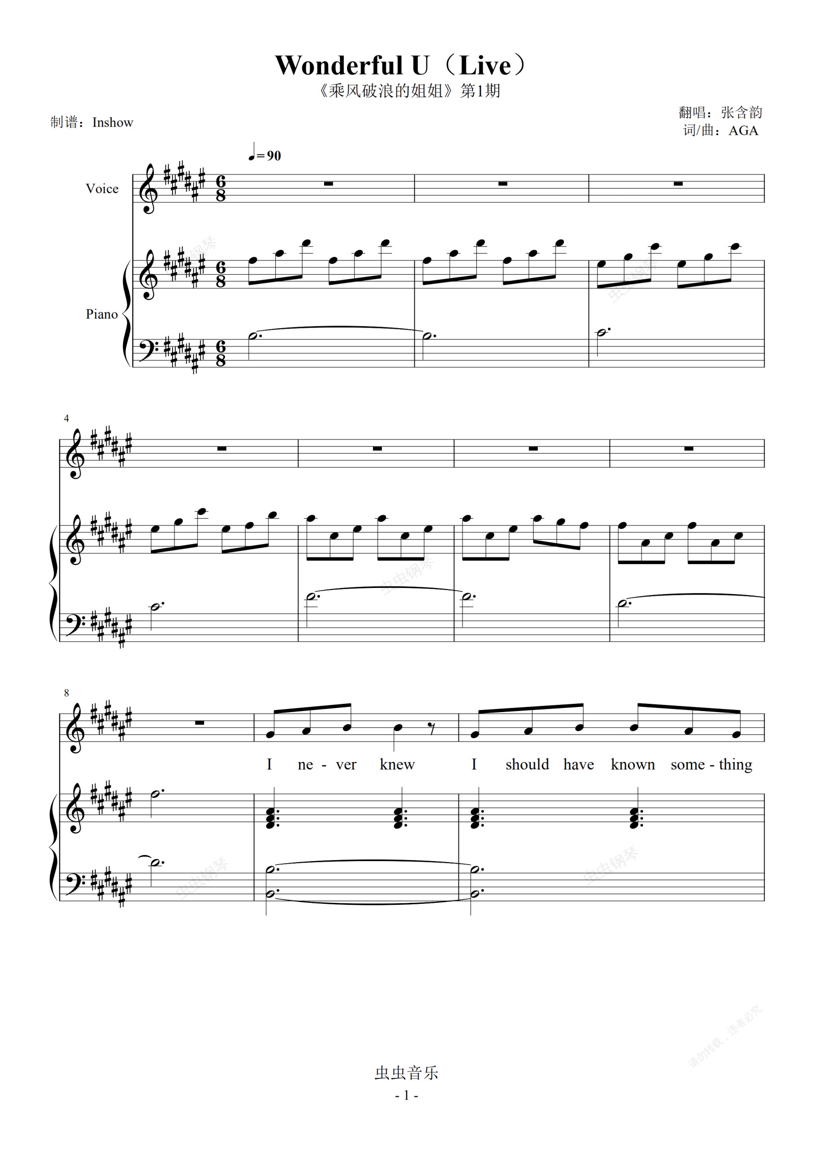 钢琴谱:Wonderful U(《乘风破浪的姐姐》第1期)