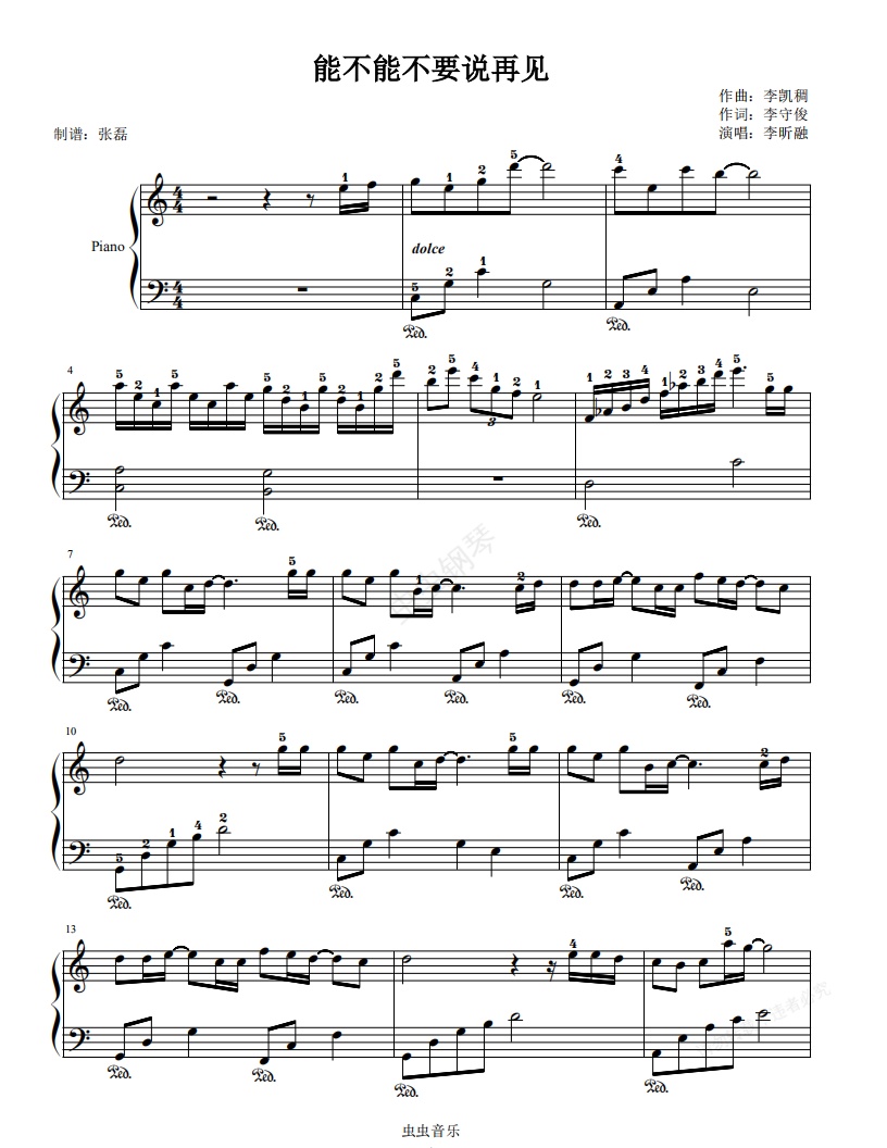 钢琴谱:能不能不要说再见--李昕融--C大调
