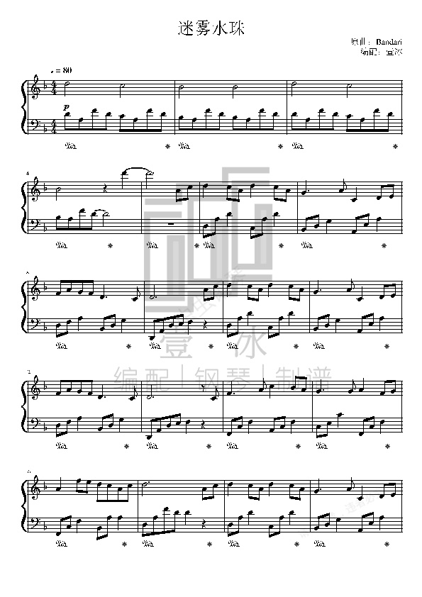 钢琴谱:迷雾水珠-班得瑞F调钢琴版