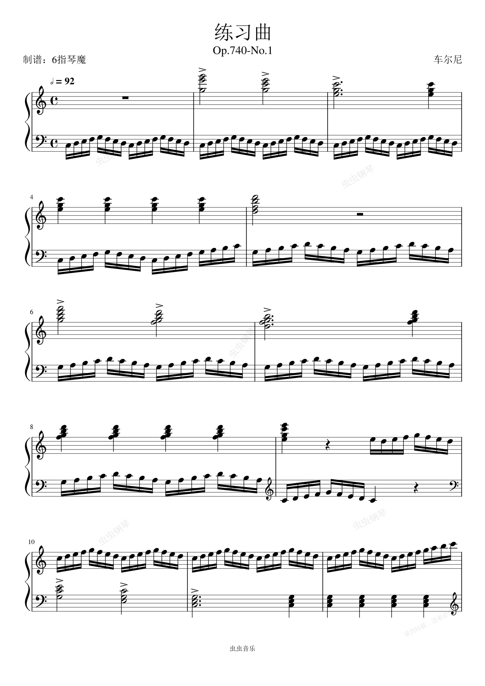 钢琴谱:Op.740-No.1——车尔尼《钢琴手指轻巧练习曲》
