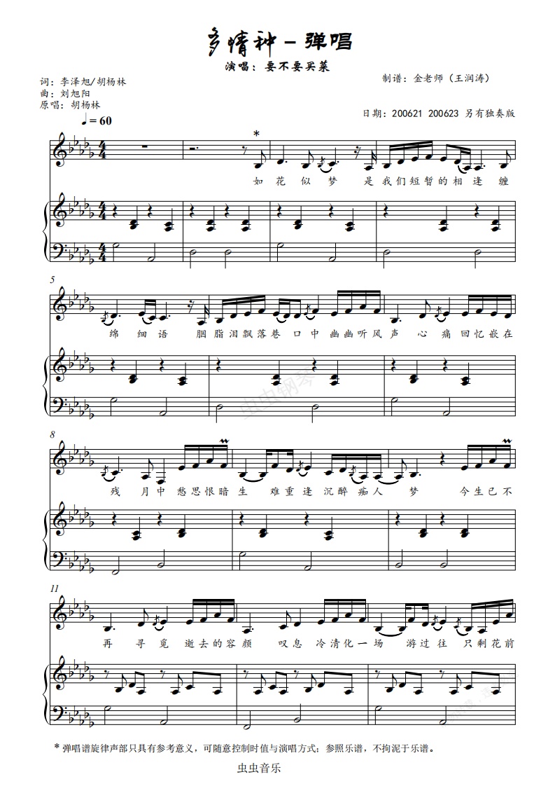 钢琴谱:多情种(要不要买菜)金老师弹唱谱200621