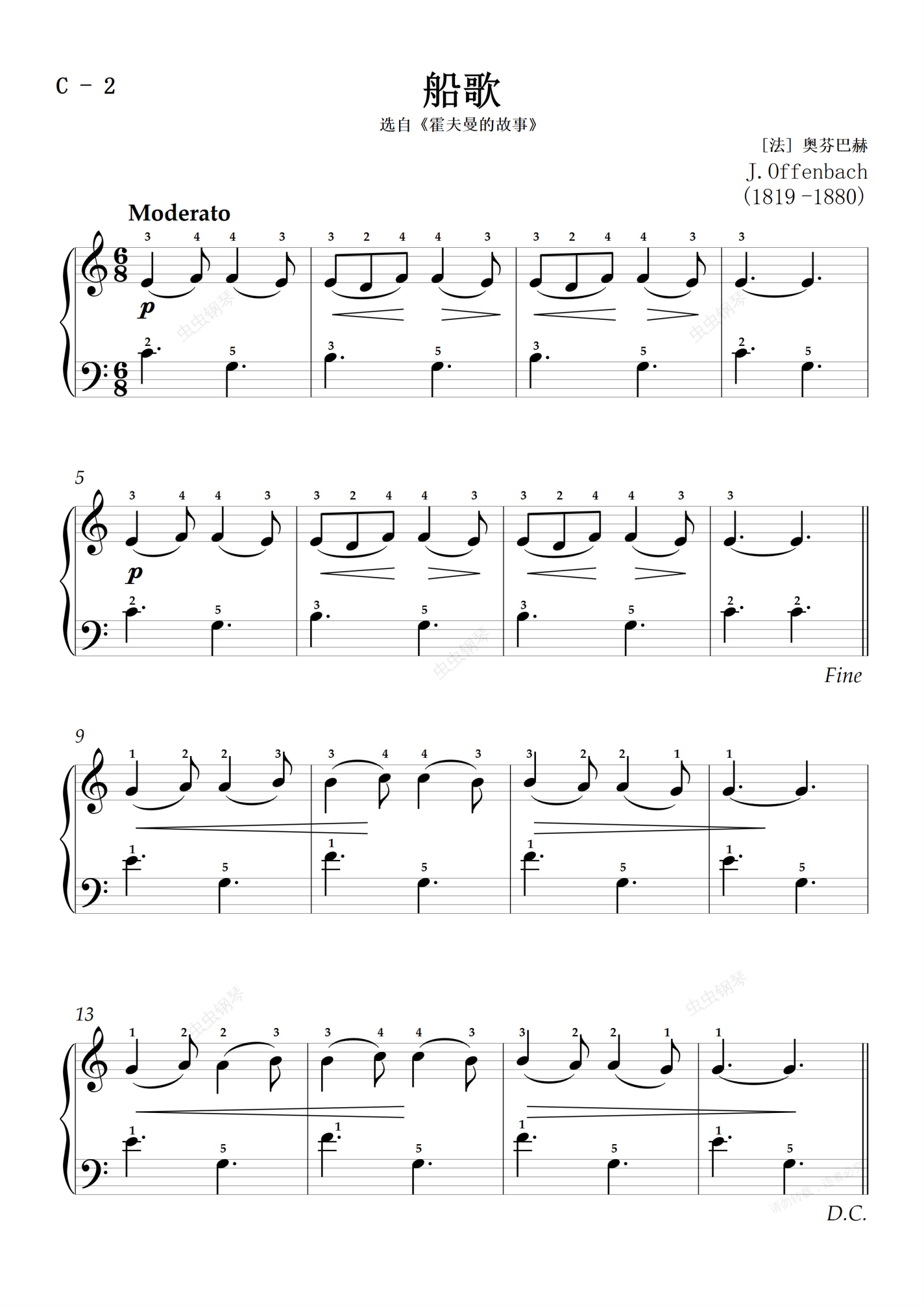 钢琴谱:【一级】C-2 船歌 [指法全解](2019新版钢琴考级)