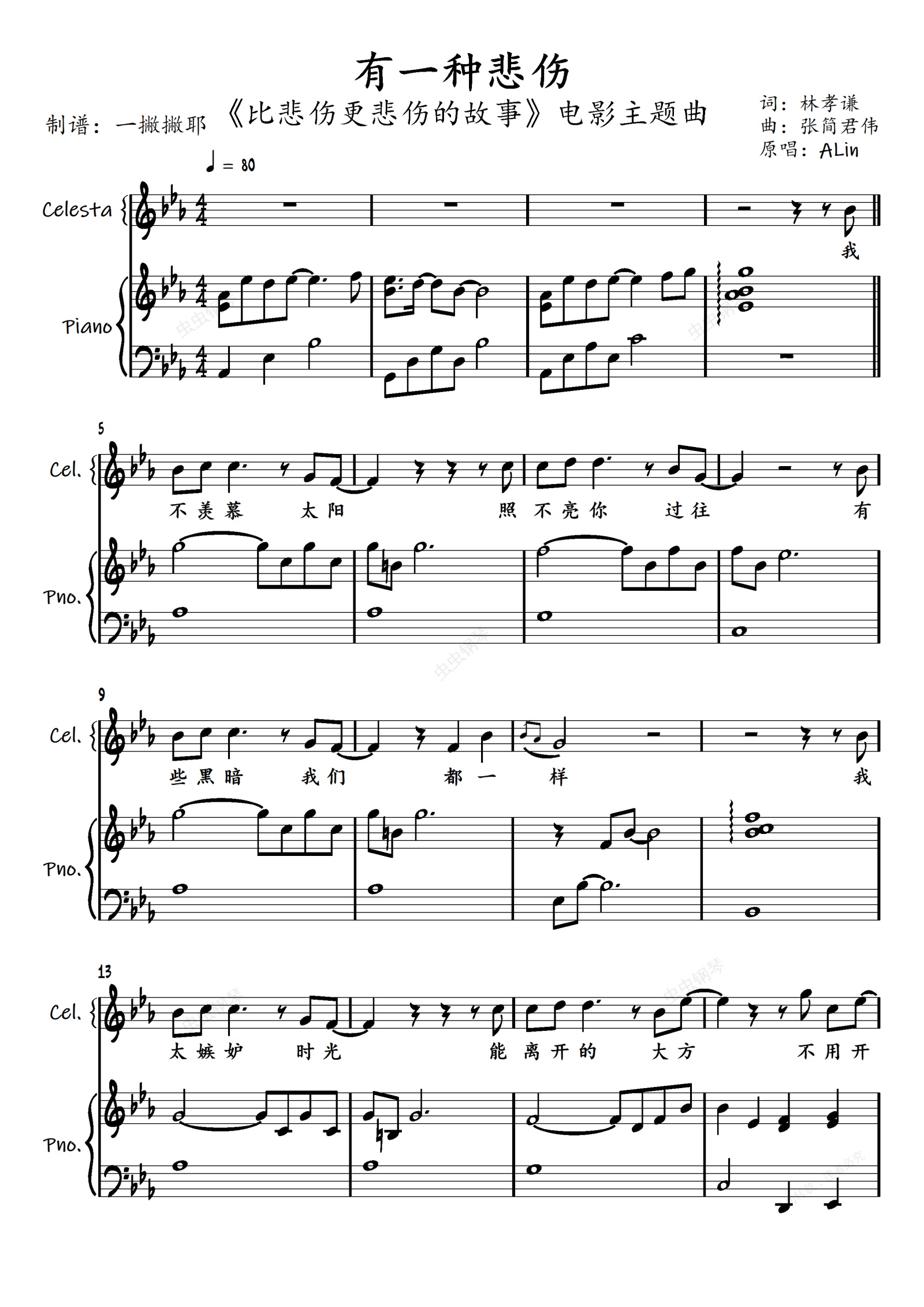 钢琴谱:有一种悲伤【降调版弹唱谱】A-Lin黄丽玲《比悲伤更悲伤的故事》「一撇撇耶」