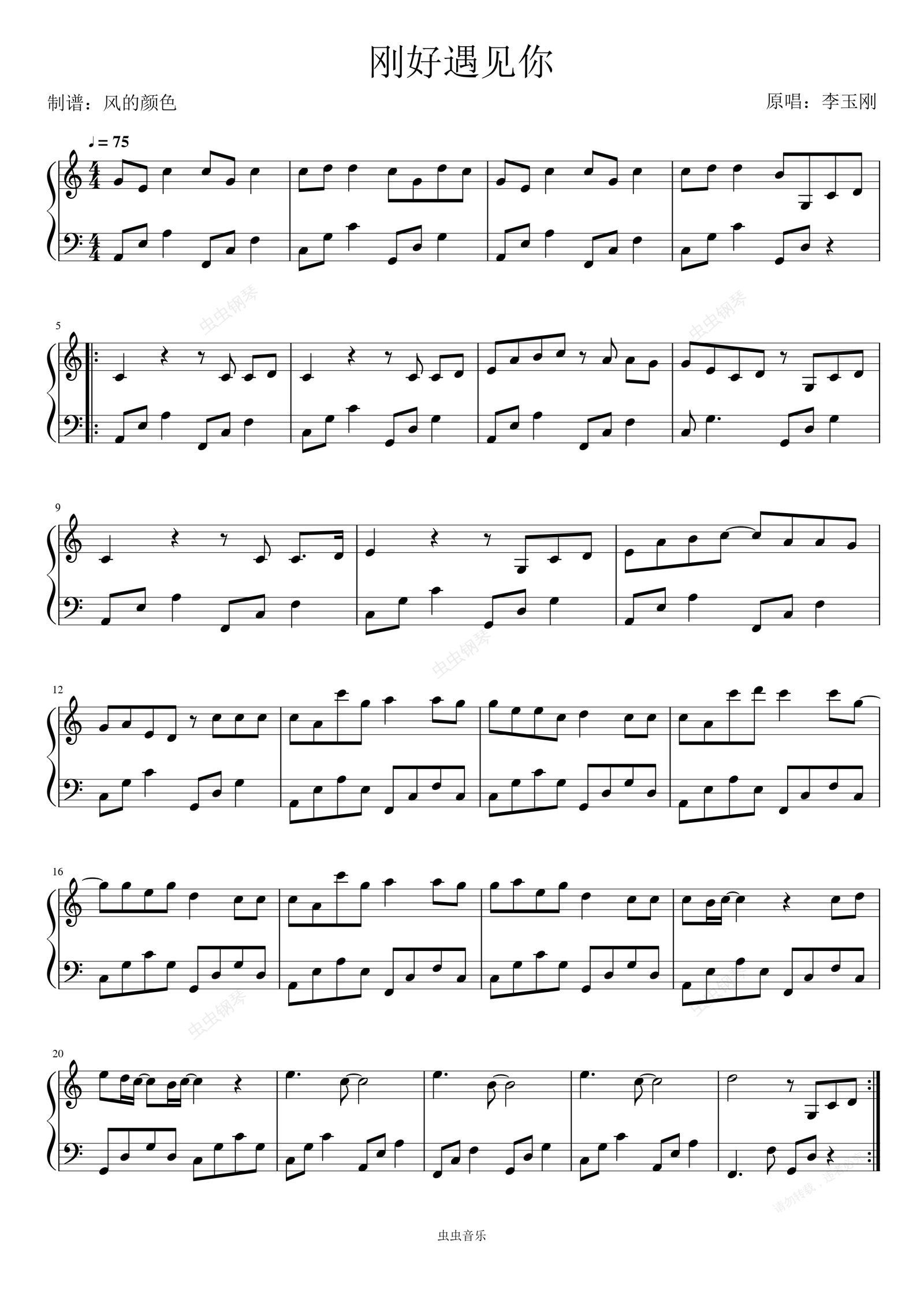 钢琴谱:《刚好遇见你》抒情钢琴独奏版