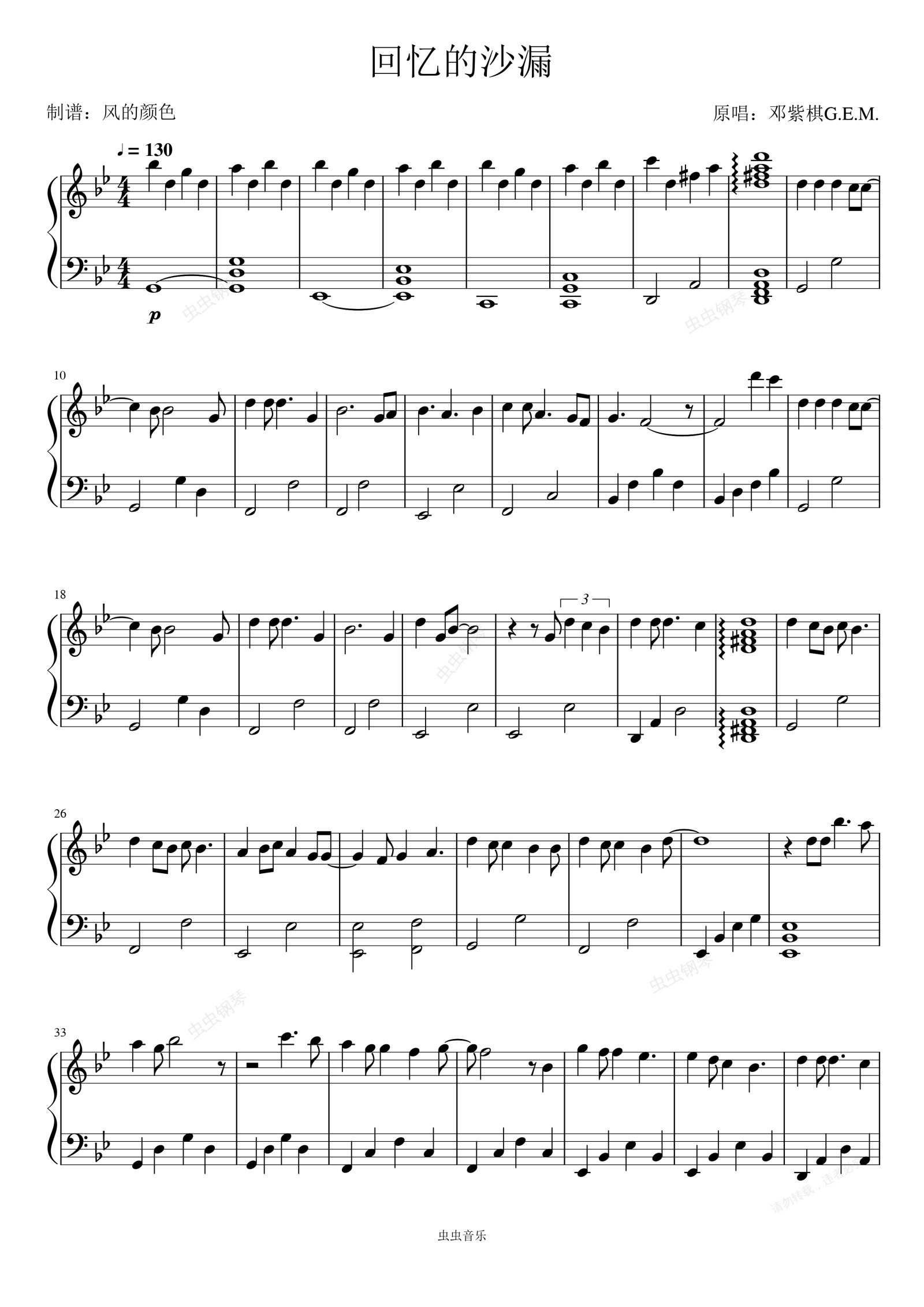 钢琴谱:回忆的沙漏~邓紫棋经典单曲