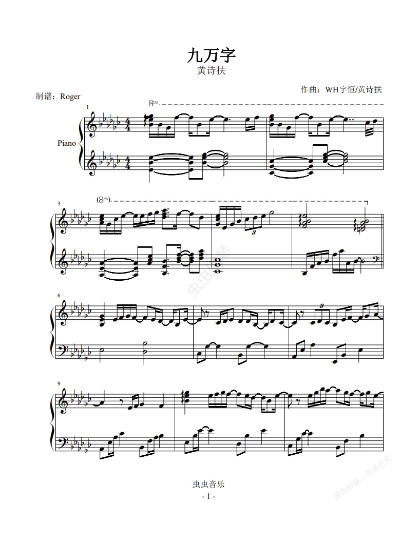 钢琴谱:黄诗扶 - 九万字 [独奏]