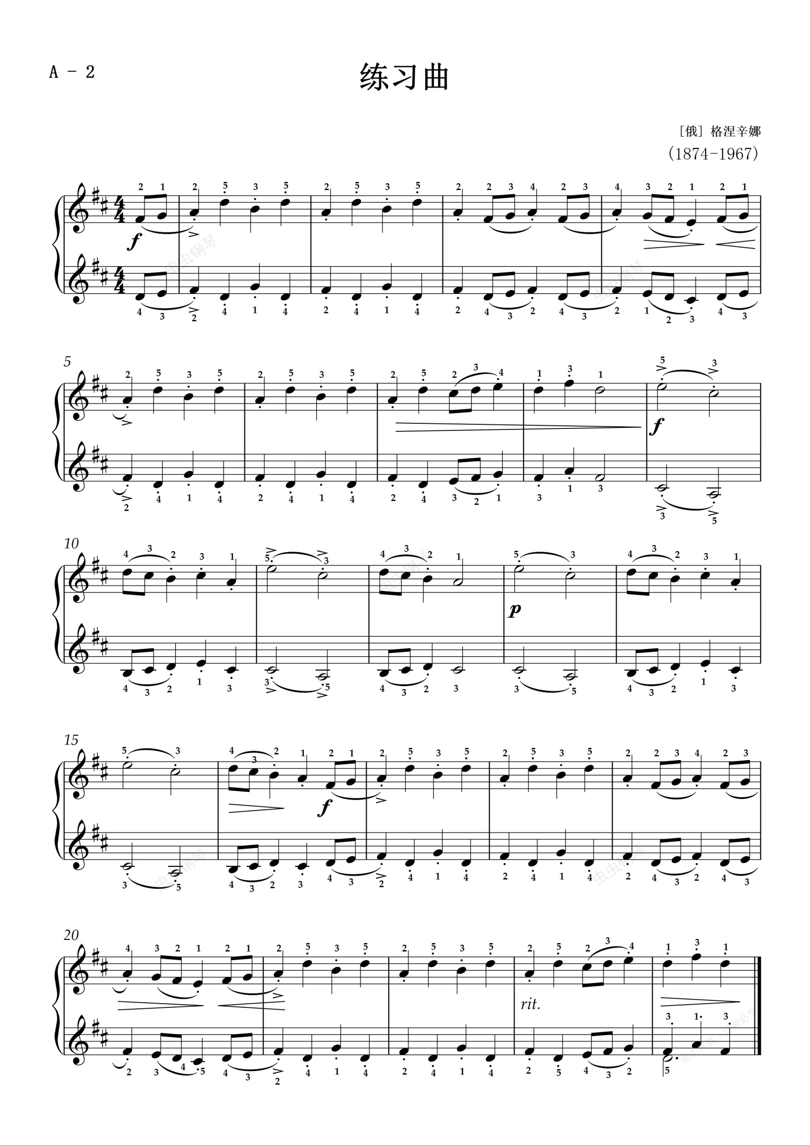 钢琴谱:【二级】A-2 练习曲 [指法全解](2019新版钢琴考级)