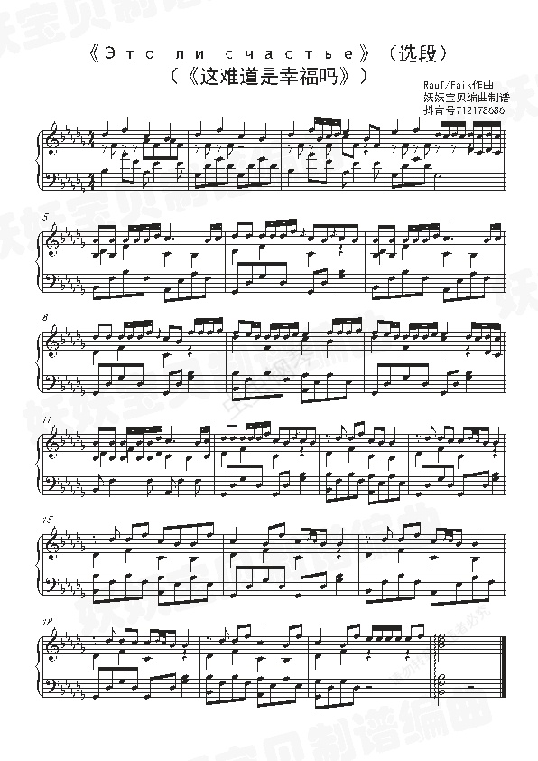 钢琴谱:抖音最新热歌《这难道是幸福吗》选段
