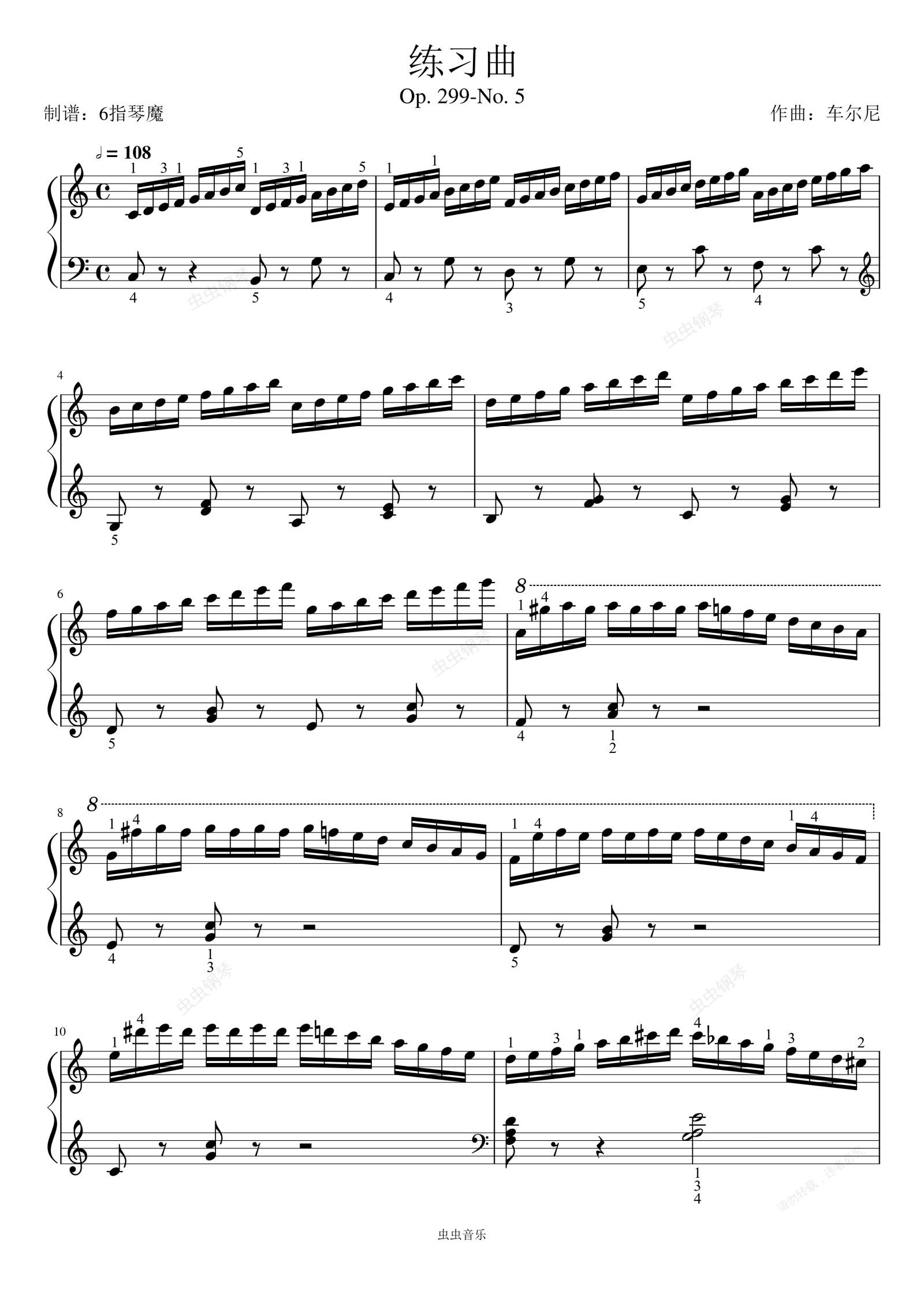 钢琴谱:Op. 299-No. 5——车尔尼《钢琴快速练习曲》