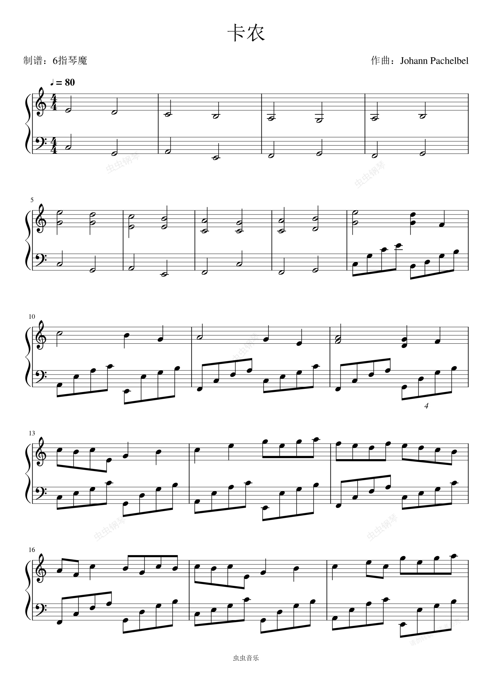 钢琴谱:卡农 Canon In D Major