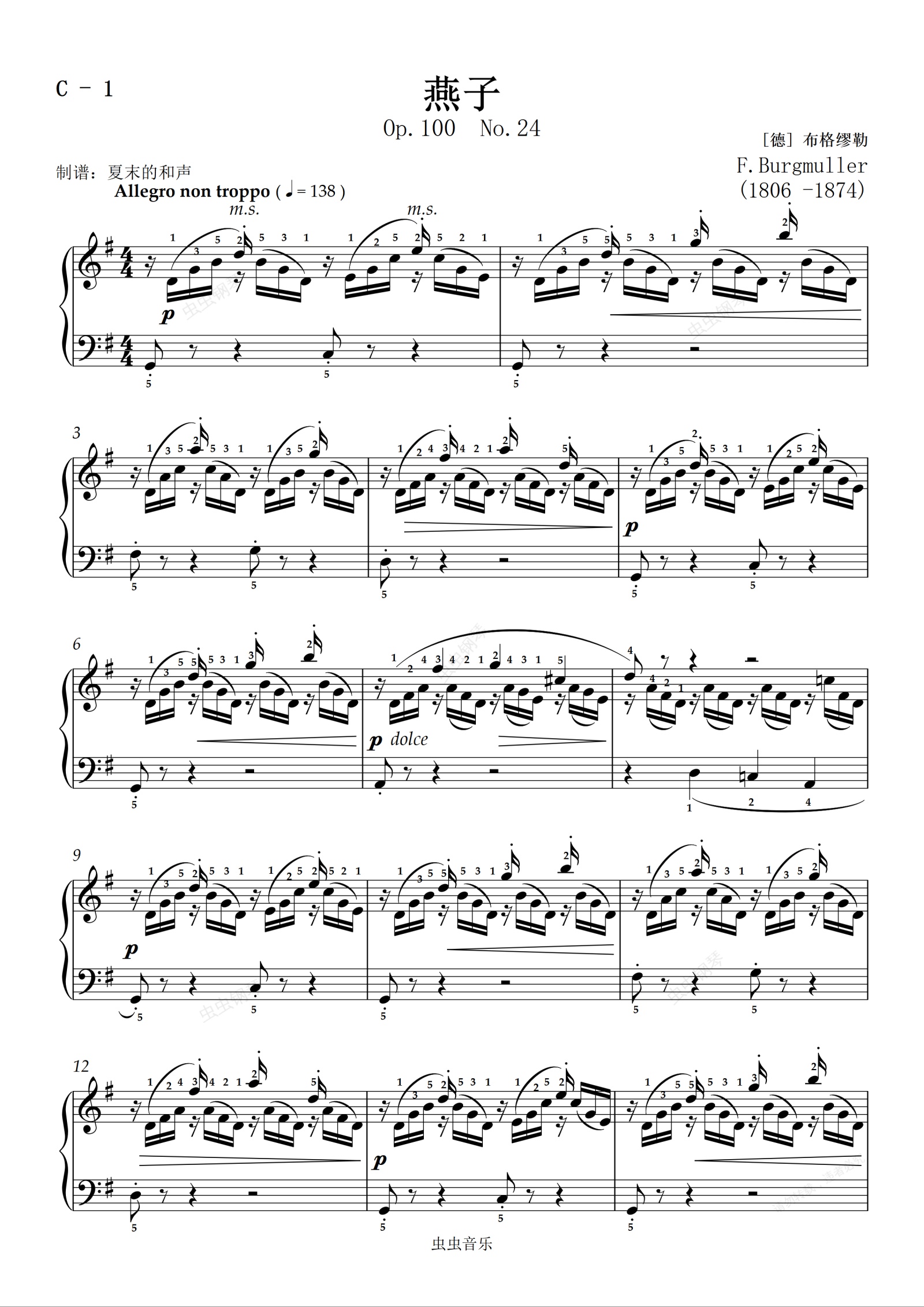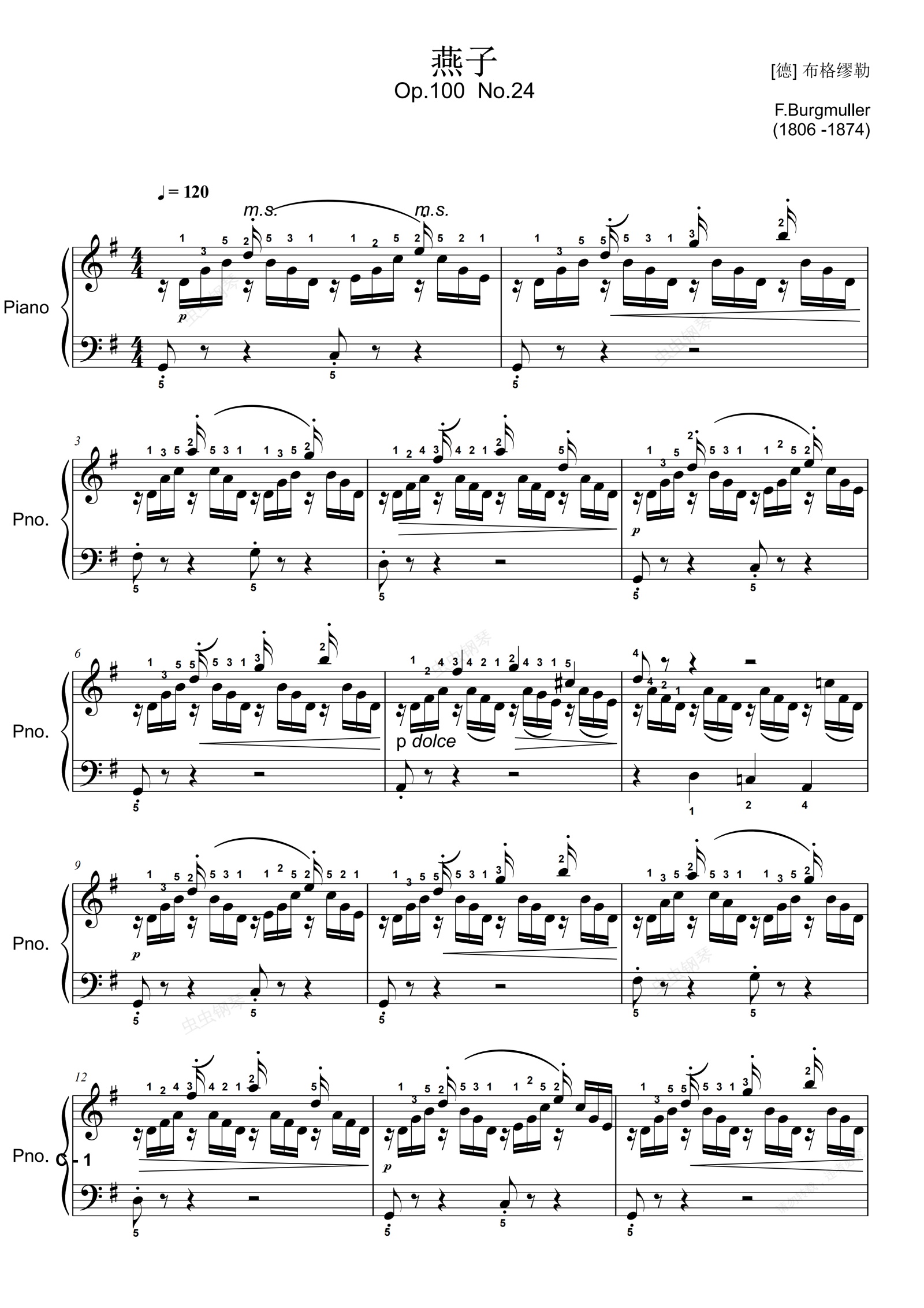 钢琴谱:【三级】C-1 燕子 [带指法](2019新版钢琴考级)