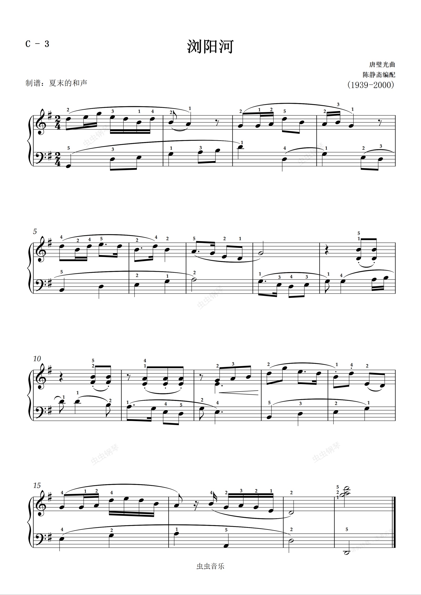 钢琴谱:【三级】C-3 浏阳河 [带指法](2019新版钢琴考级)