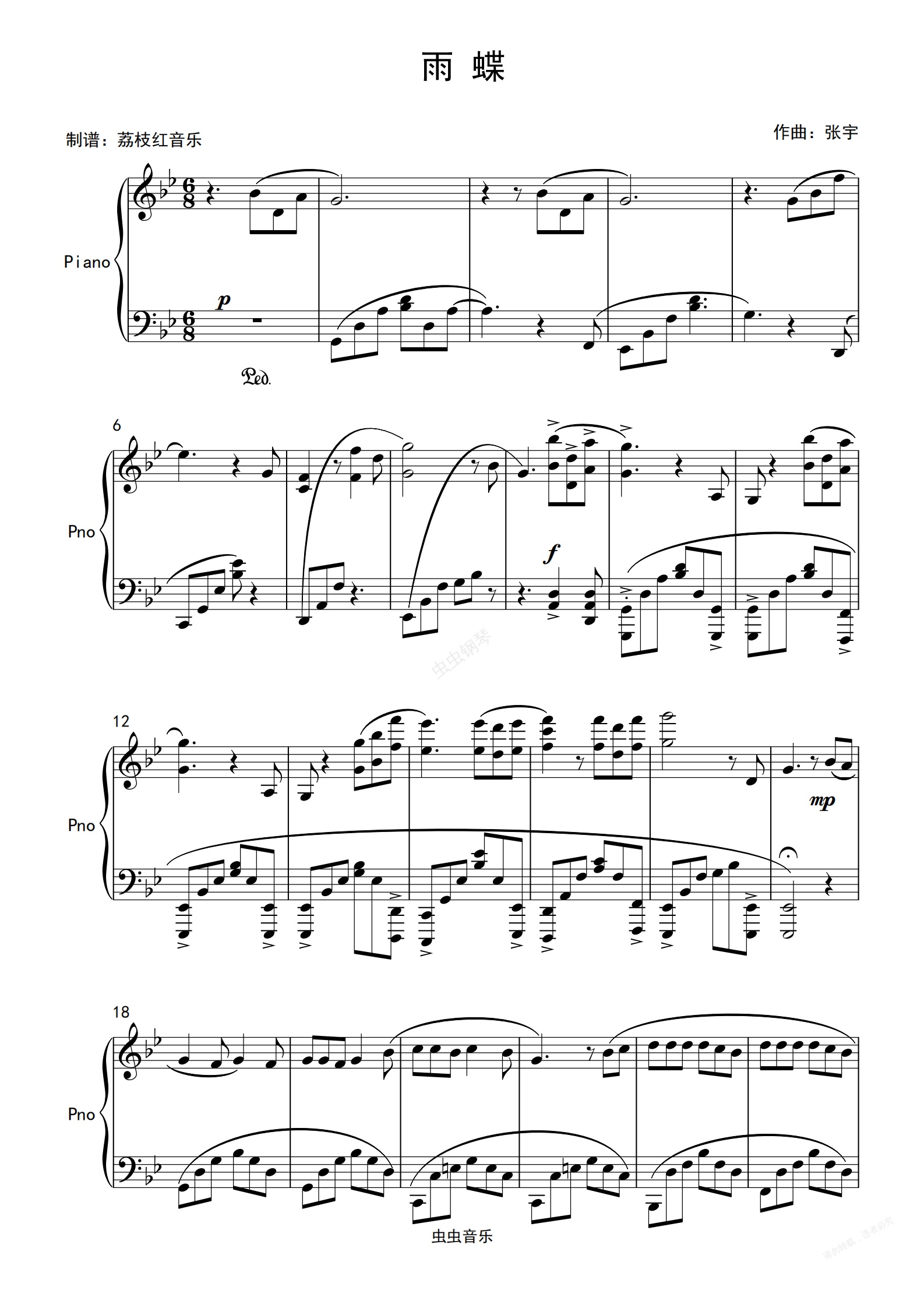 钢琴谱:最好的降b调版本 雨蝶-还珠格格片尾曲-李翊君